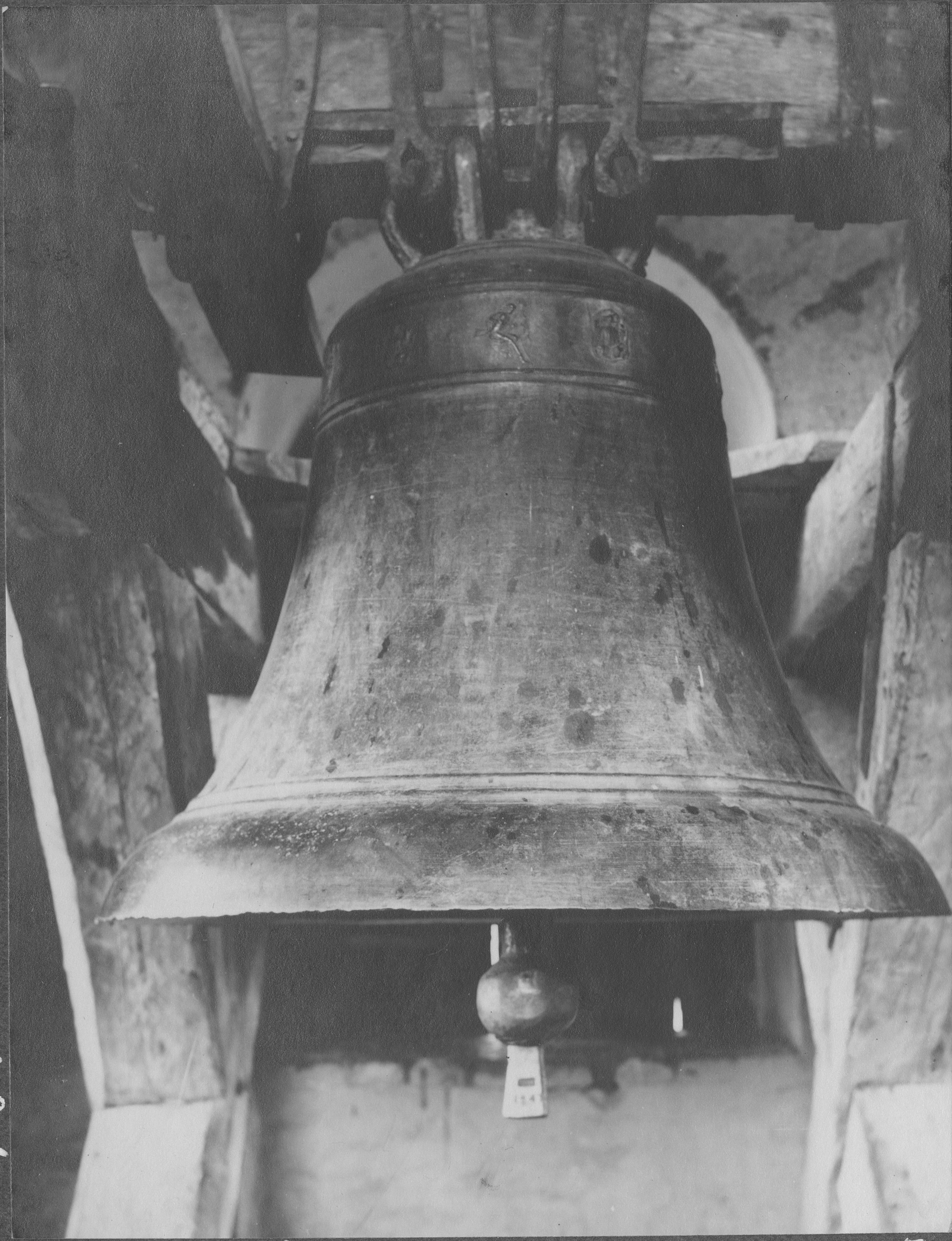 Beskrivning: Storklockan, troligen från 1200-talet. 94 cm i diameter. Talrika figurreliefer.