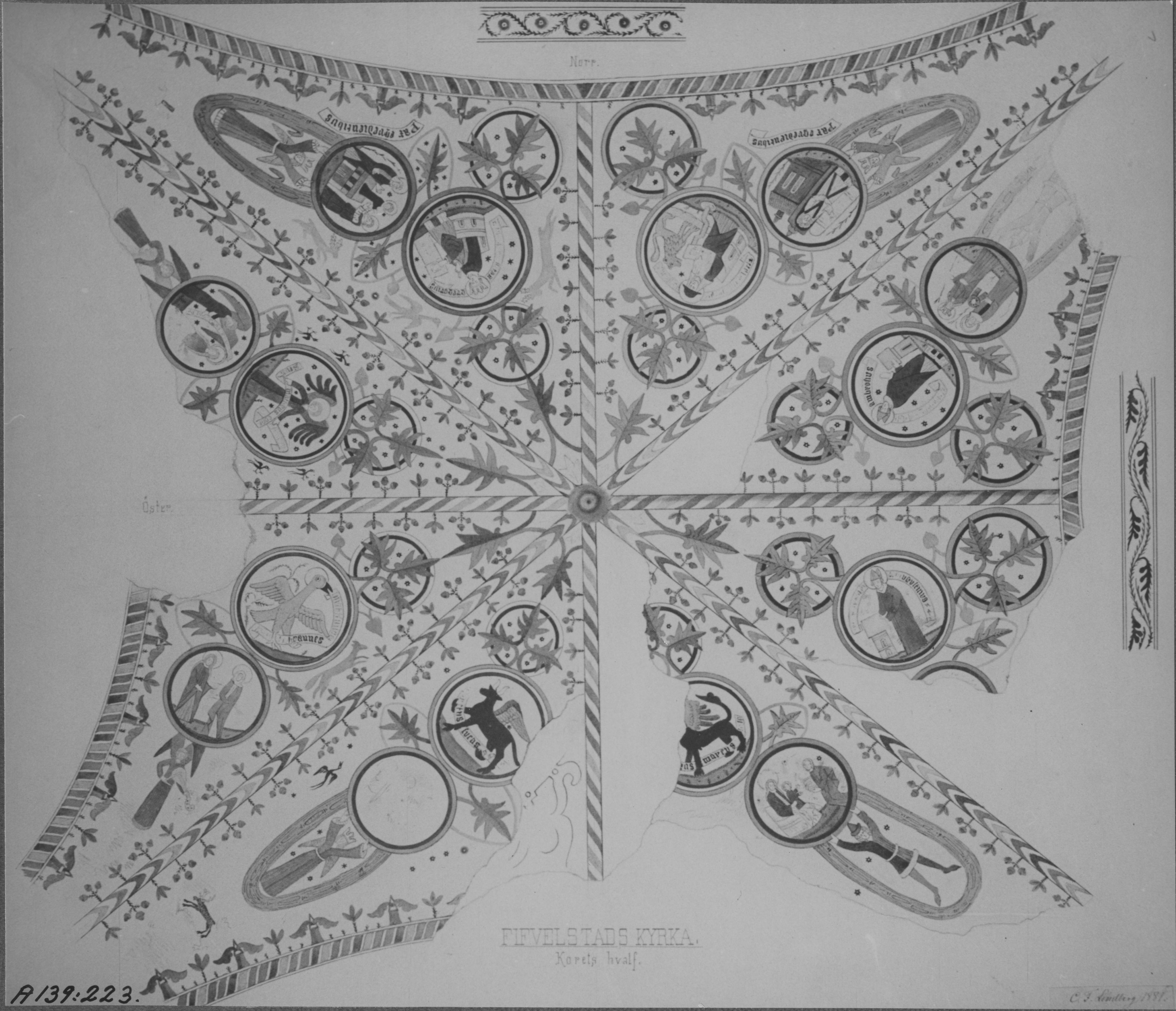 Beskrivning: Målade skisser av C.F. Lindberg 1881.