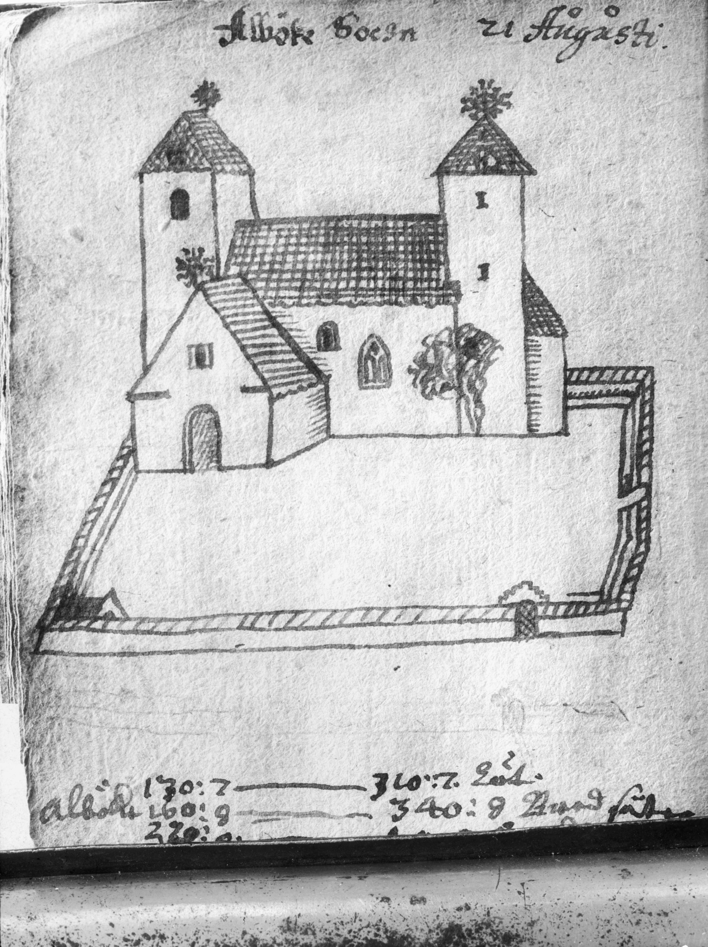 Beskrivning: Teckning av kyrkan. Ur Rhezelius Ölands Runstenar.