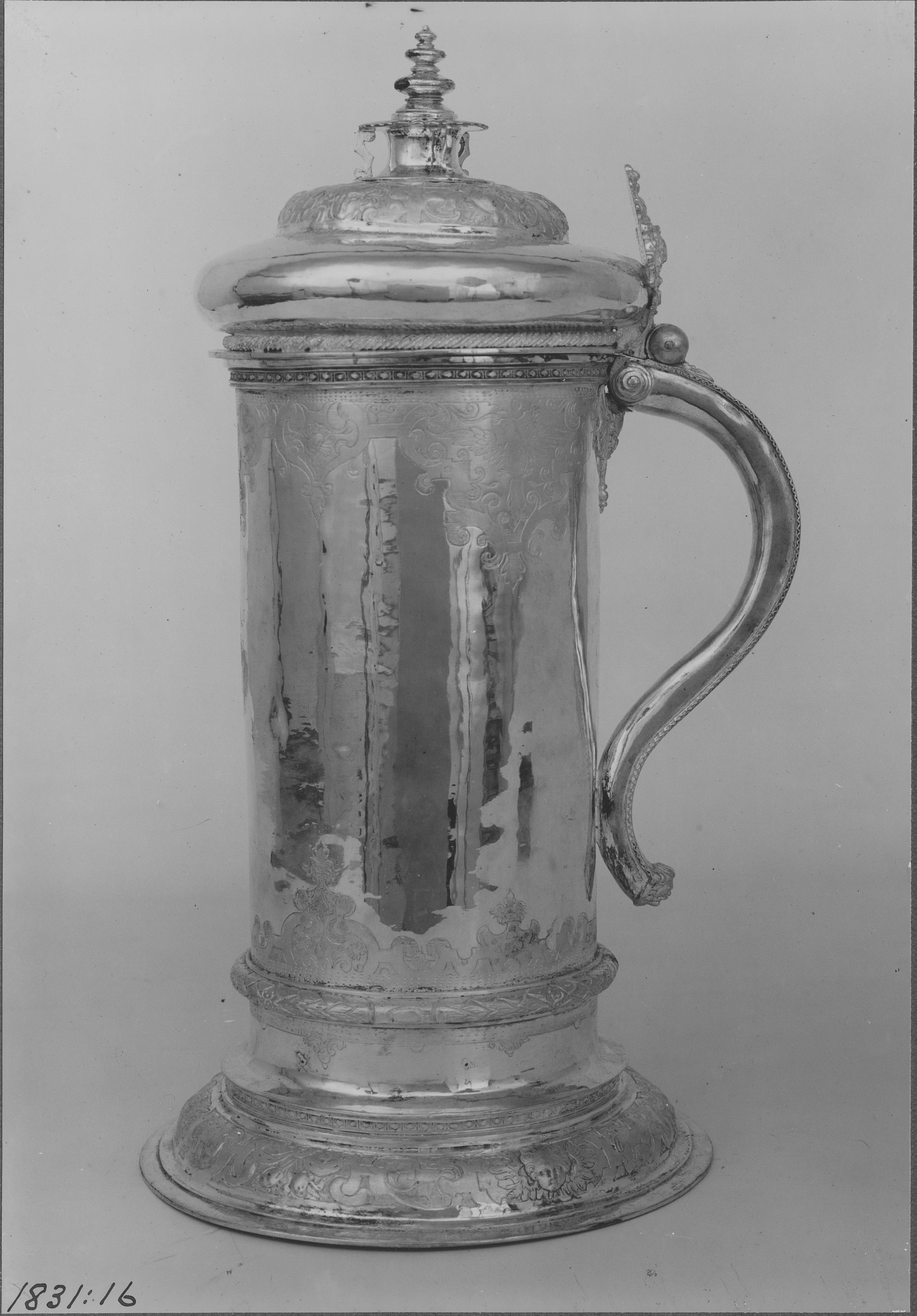 Beskrivning: Vinkanna av silver, från 1600-talet.