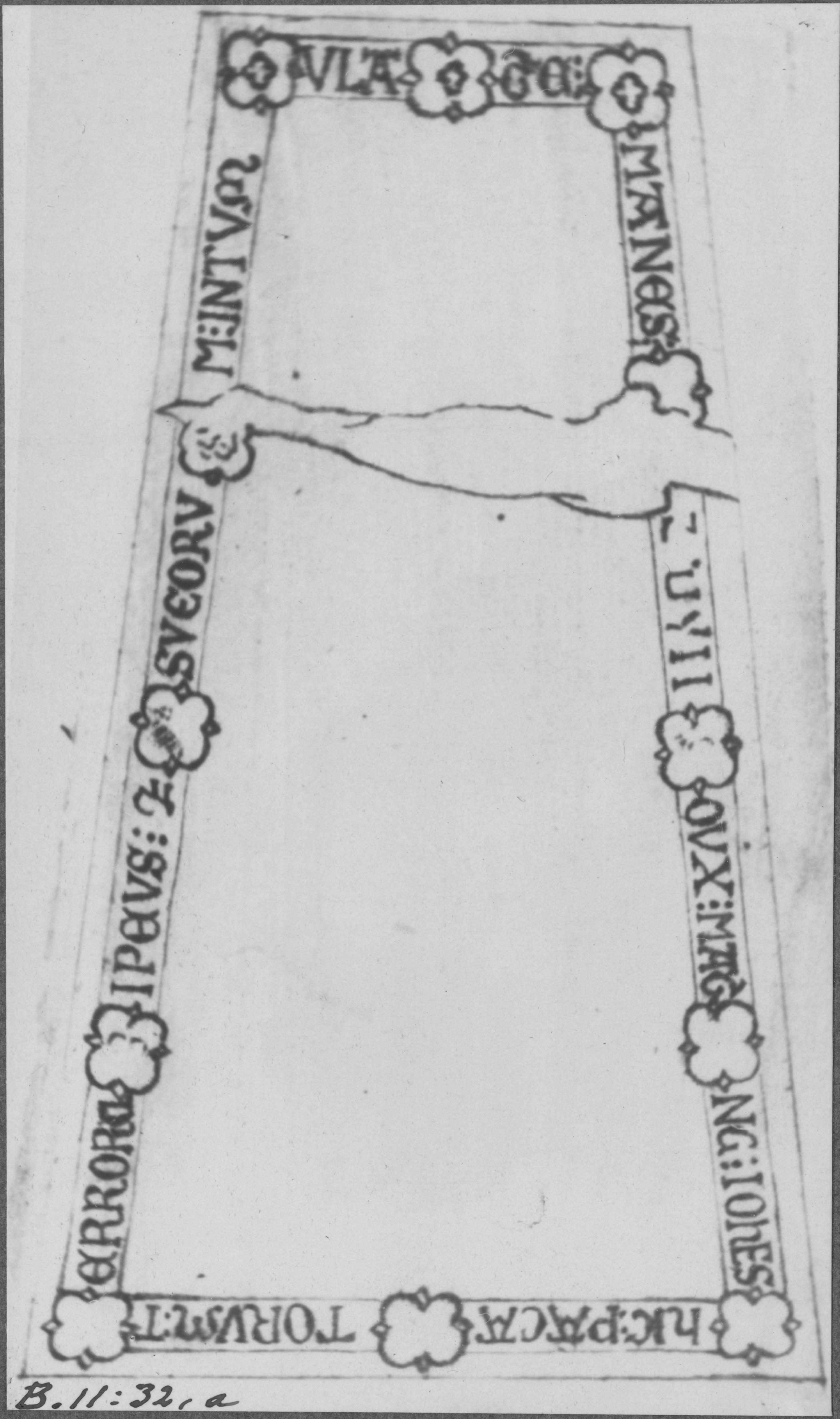 Beskrivning: Gravsten. Teckning. Foto ur Leiz och Brenner: Gravstenar 1669 och 1670. K.B. Handskrifter F.1.46.