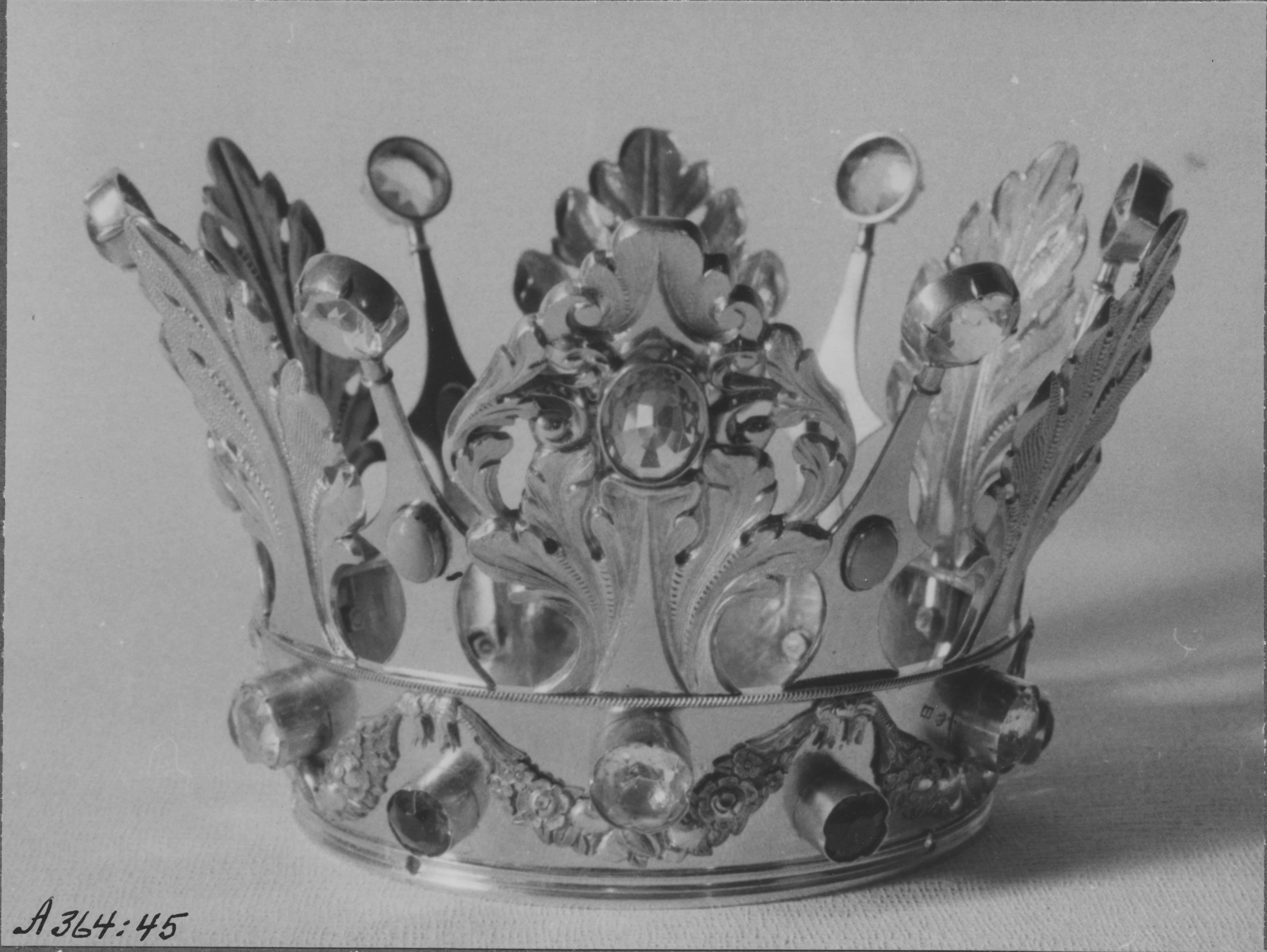 Beskrivning: Brudkrona av förgyllt silver från 1871. Sveriges Kyrkor.