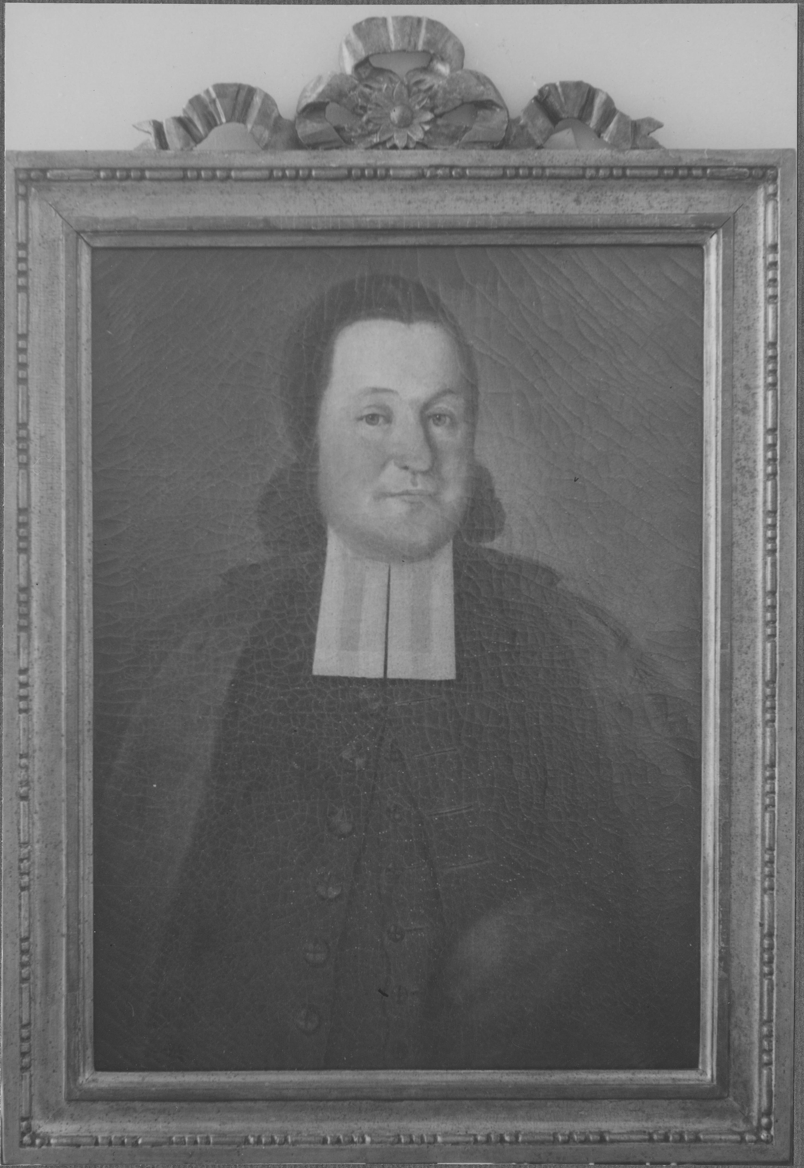 Beskrivning: Porträtt av kyrkoherde Nils Rudelius, av Magnus Hallman 1785. Efter restaurering.