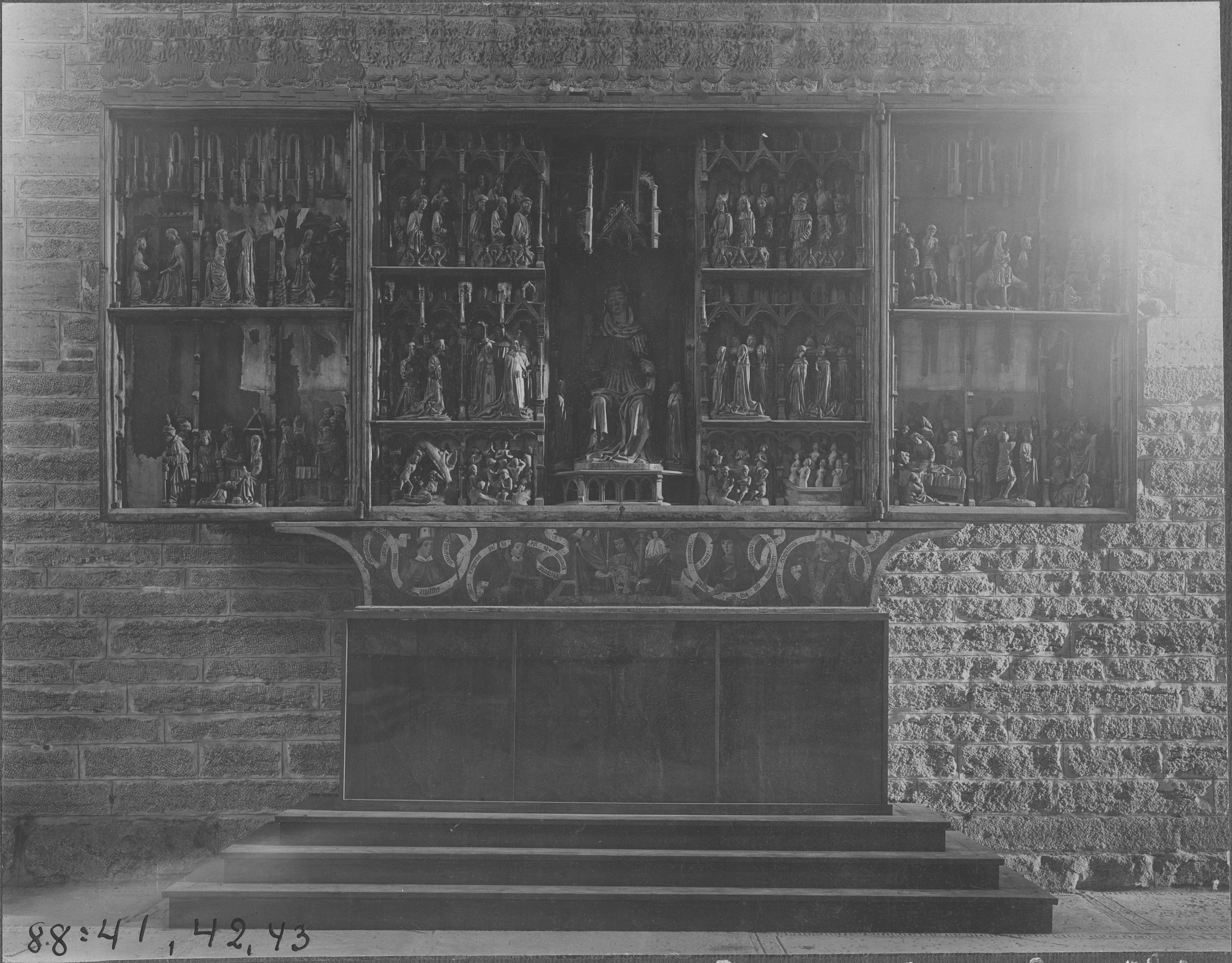 Beskrivning: Altarskåp av ek, Birgitta-altarskåpet, 1400-talets tredje fjärdedel.