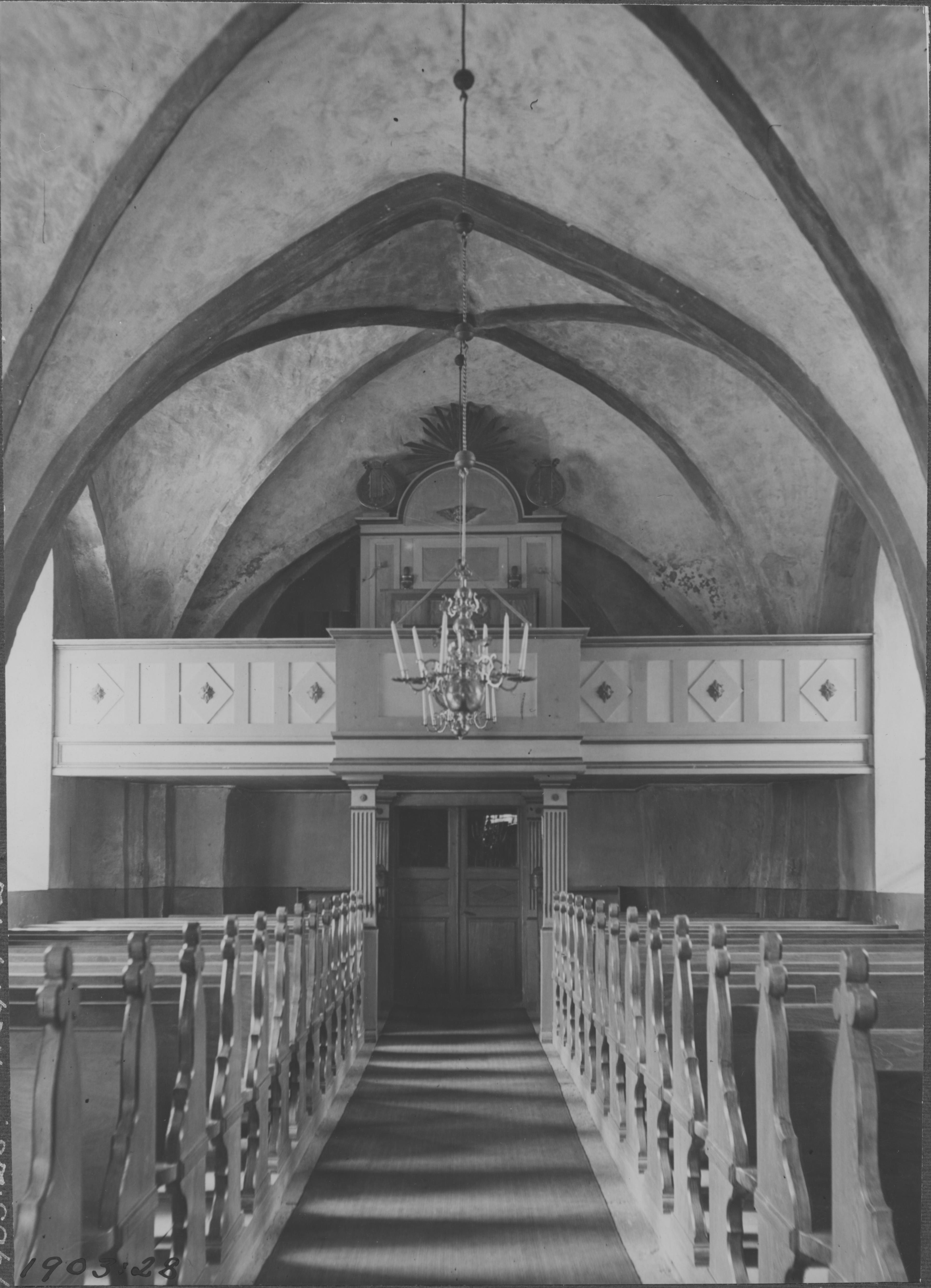 Beskrivning: Mot läktaren. Orgel av Hanner 1836. Fasaden kvar.