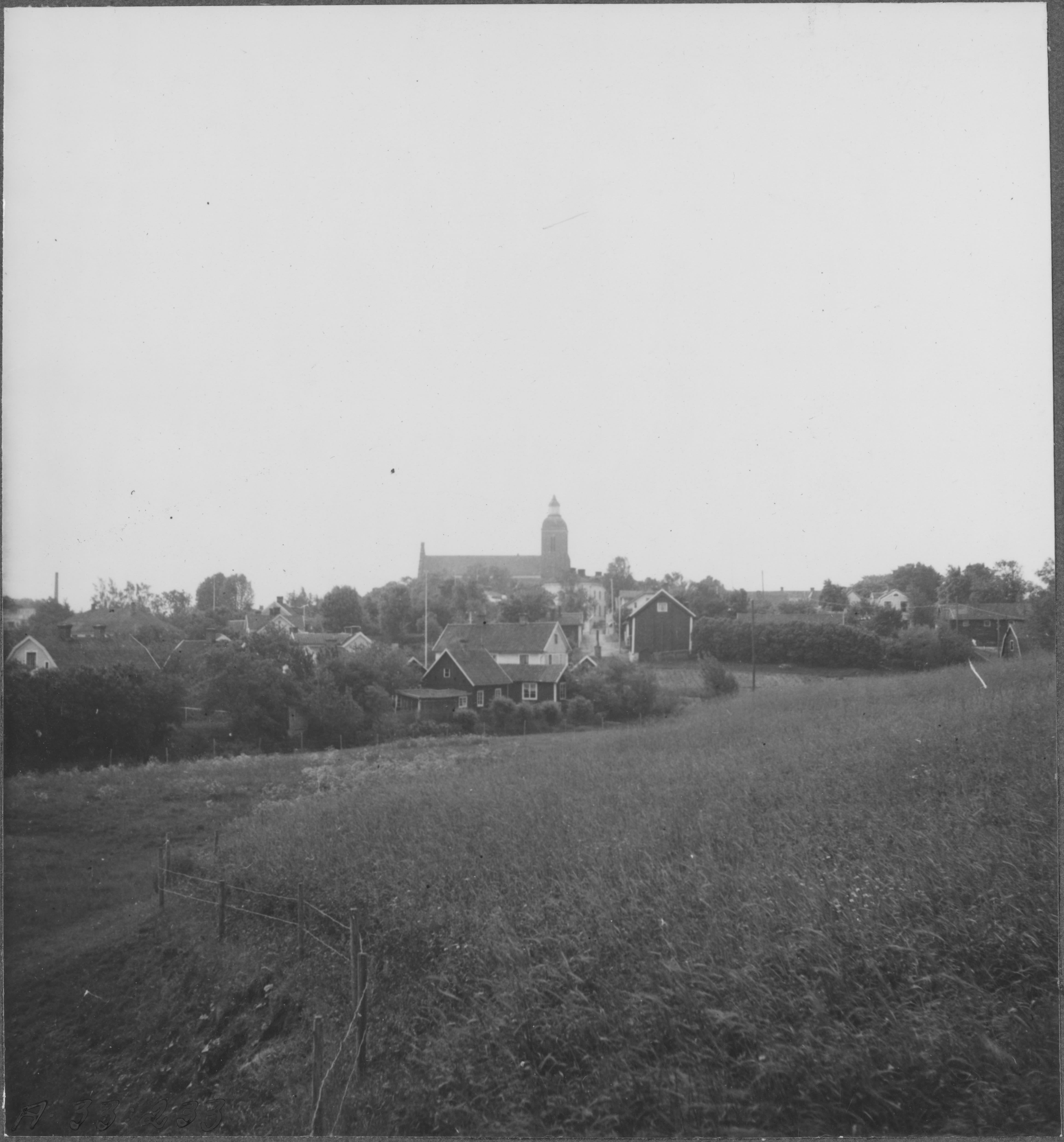 Beskrivning: Kyrkan med omgivning. Från norr.