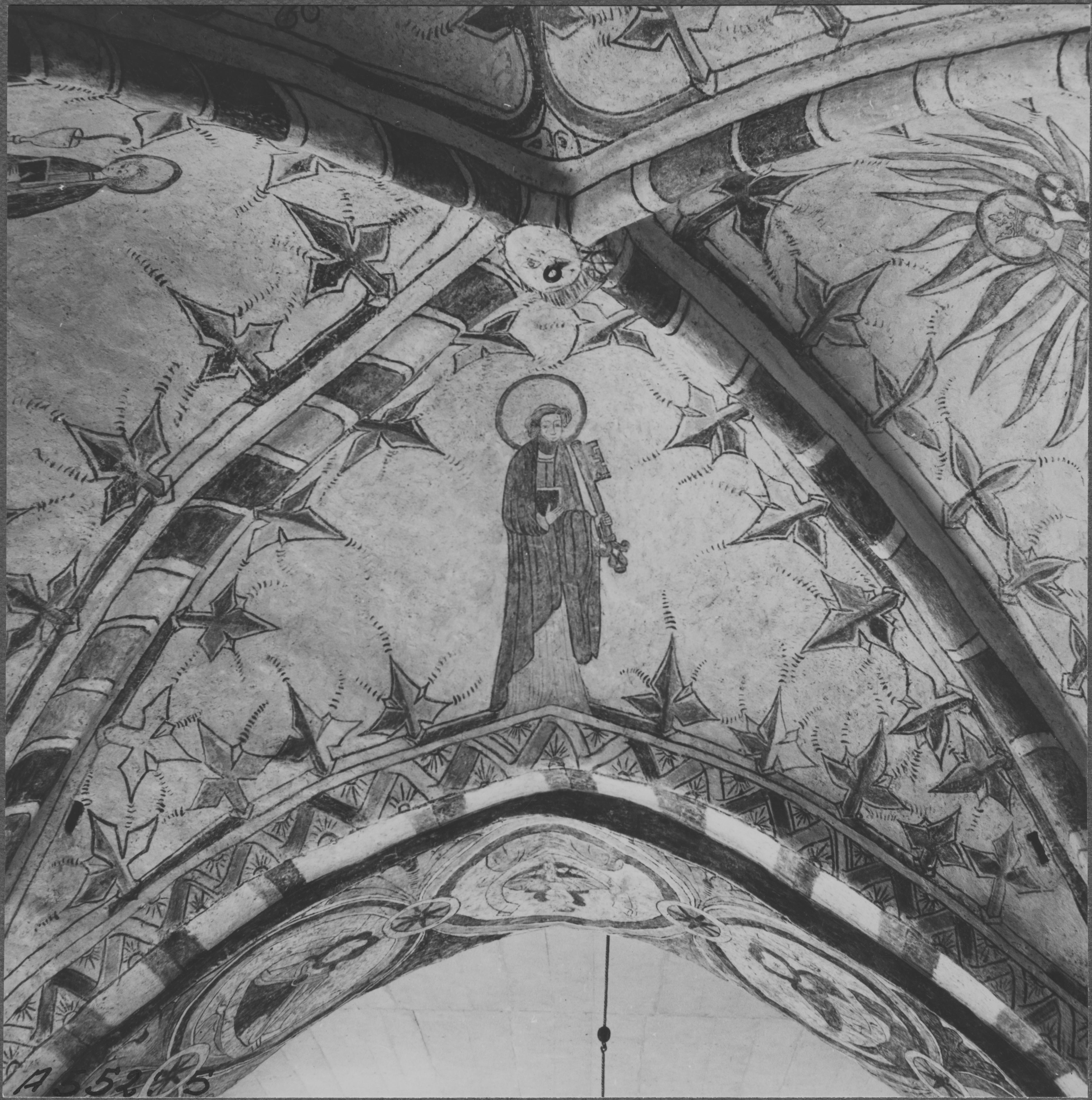 Beskrivning: Västra valvkappan efter restaureringen 1945.