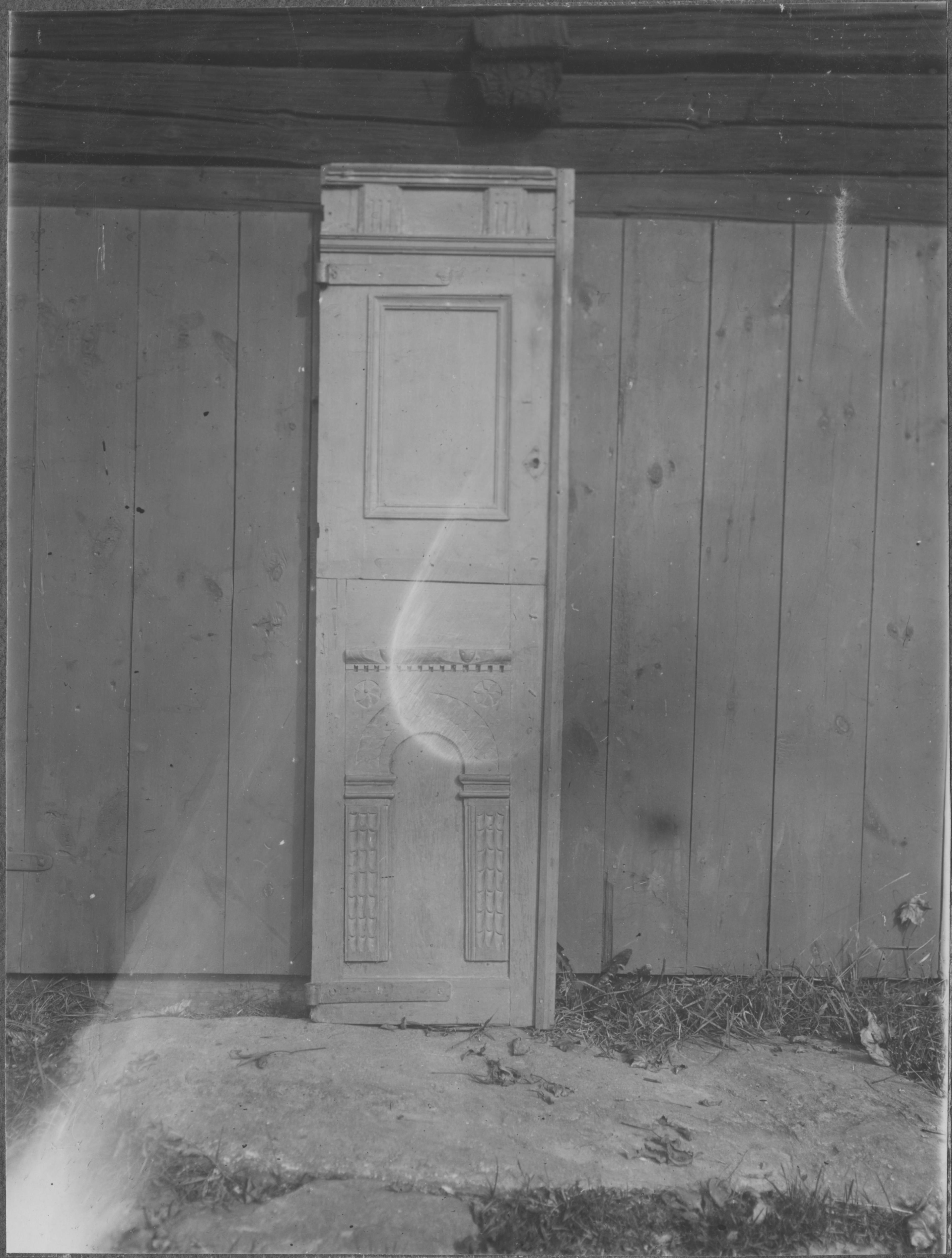 Beskrivning: Dörr, uppges vara från "Gamla kyrkan". Nu i Kyrkbyns gård.