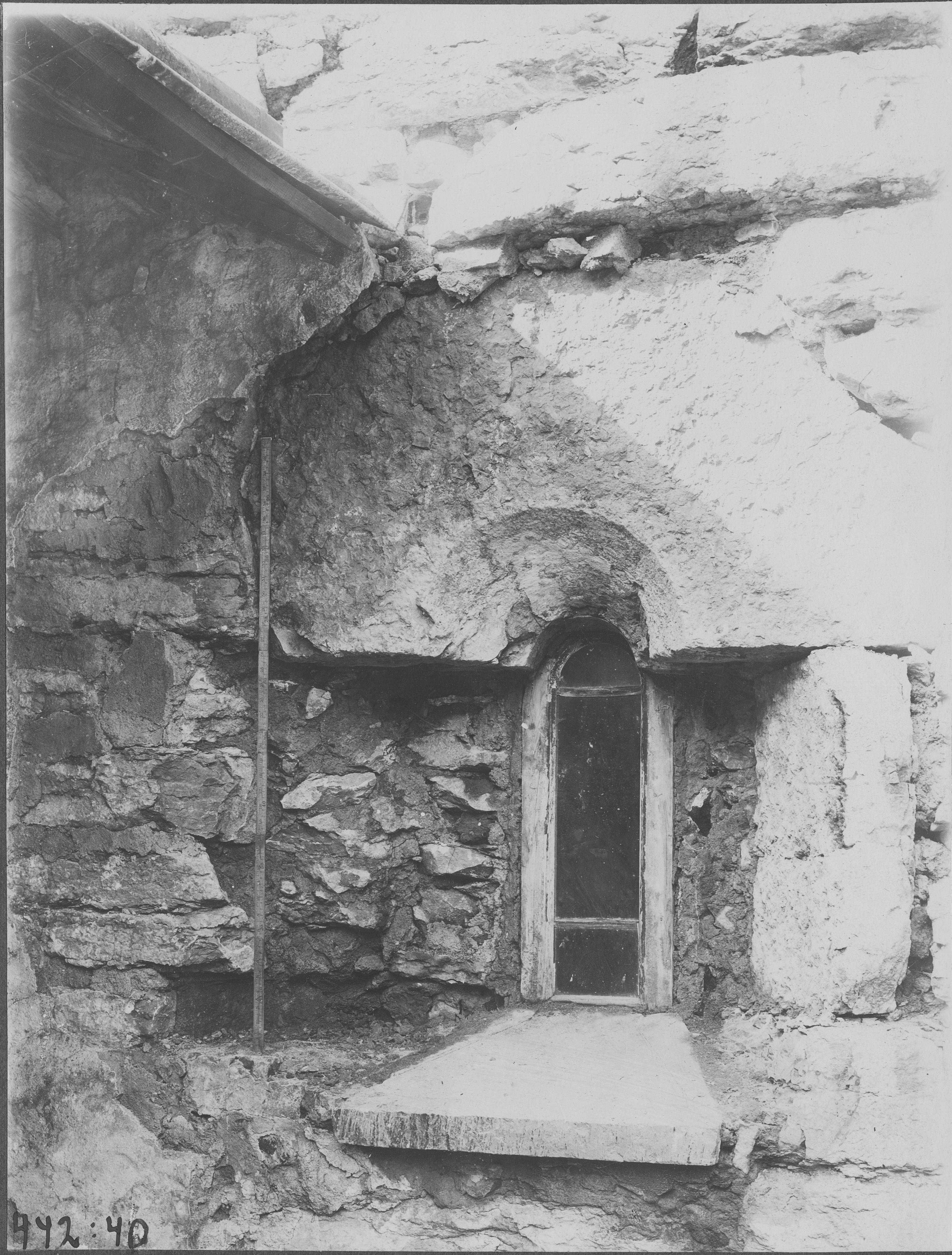 Beskrivning: Detalj av södra fasaden och Magnus Nilssons gravkor. Fotot troligen från 1915.
