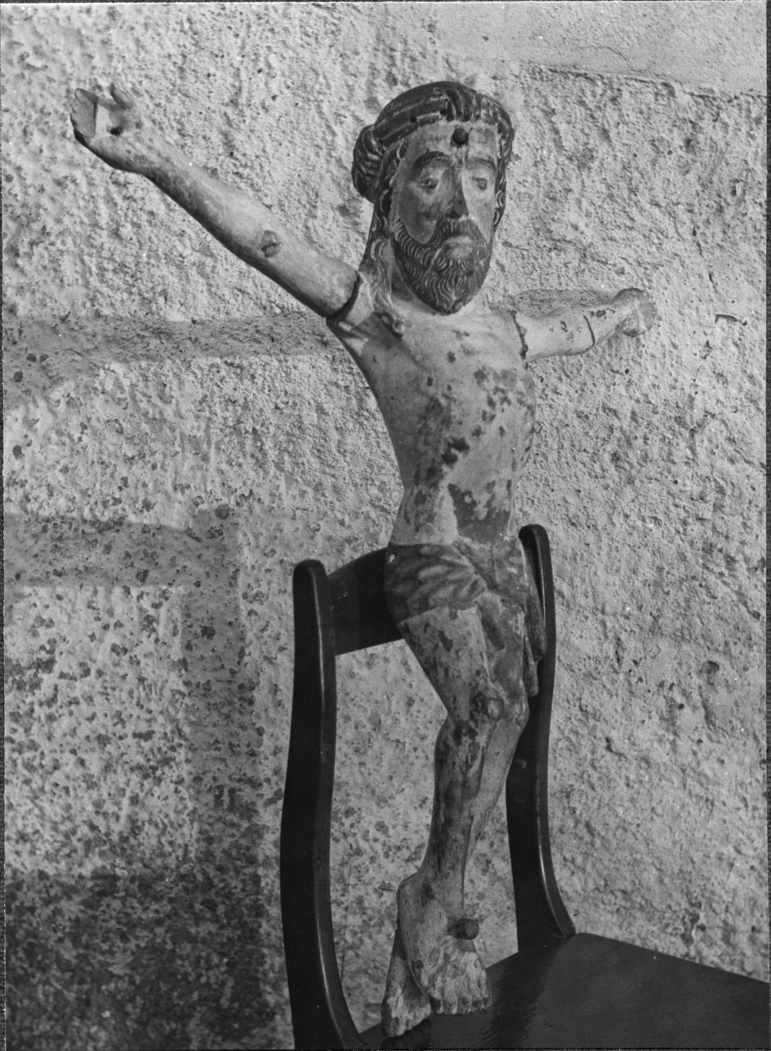Beskrivning: Beskrivning: Kristusfigur från medeltida krucifix där korset saknas.