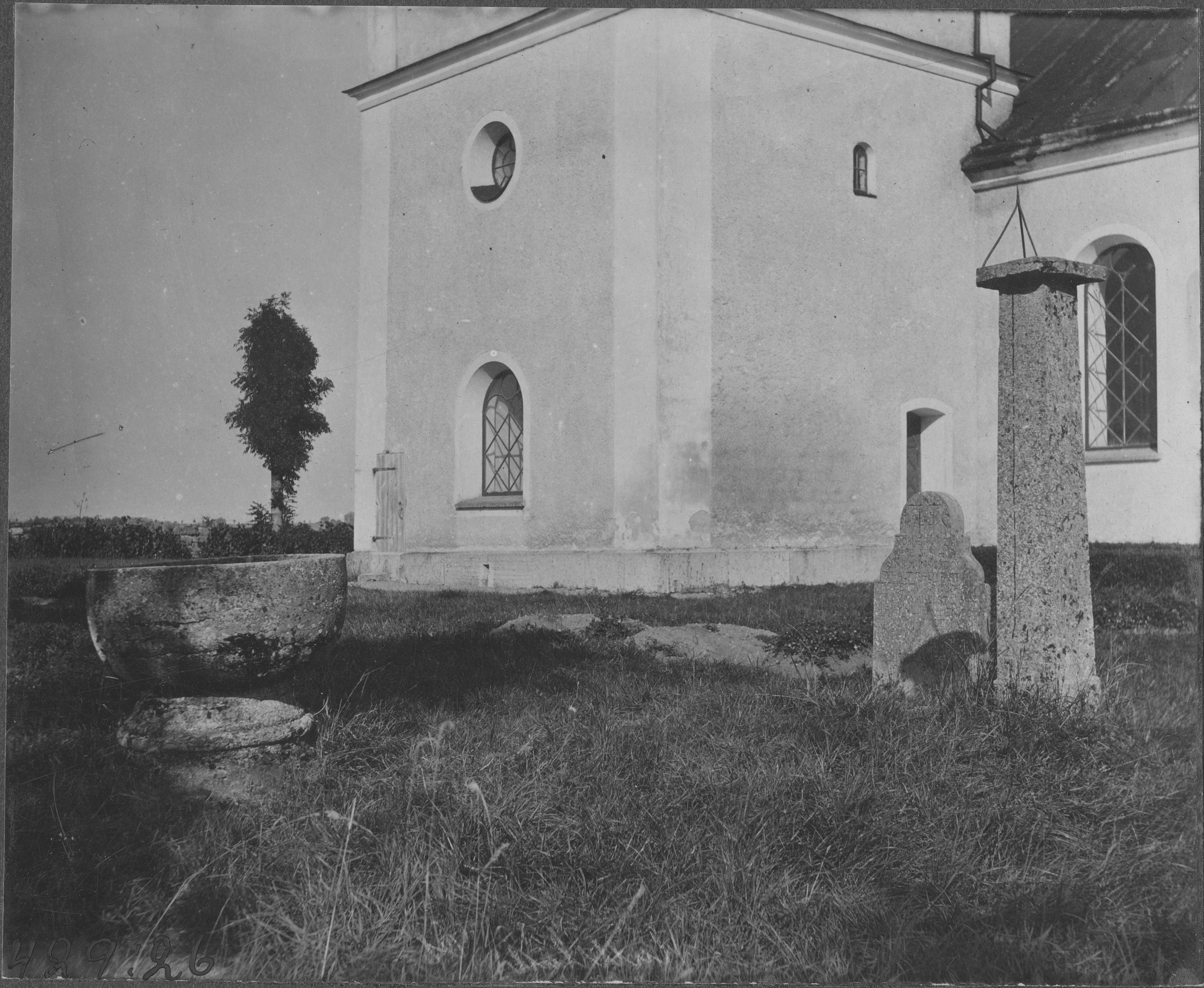 Beskrivning: Kyrktornet på den västra långsidan, detalj.