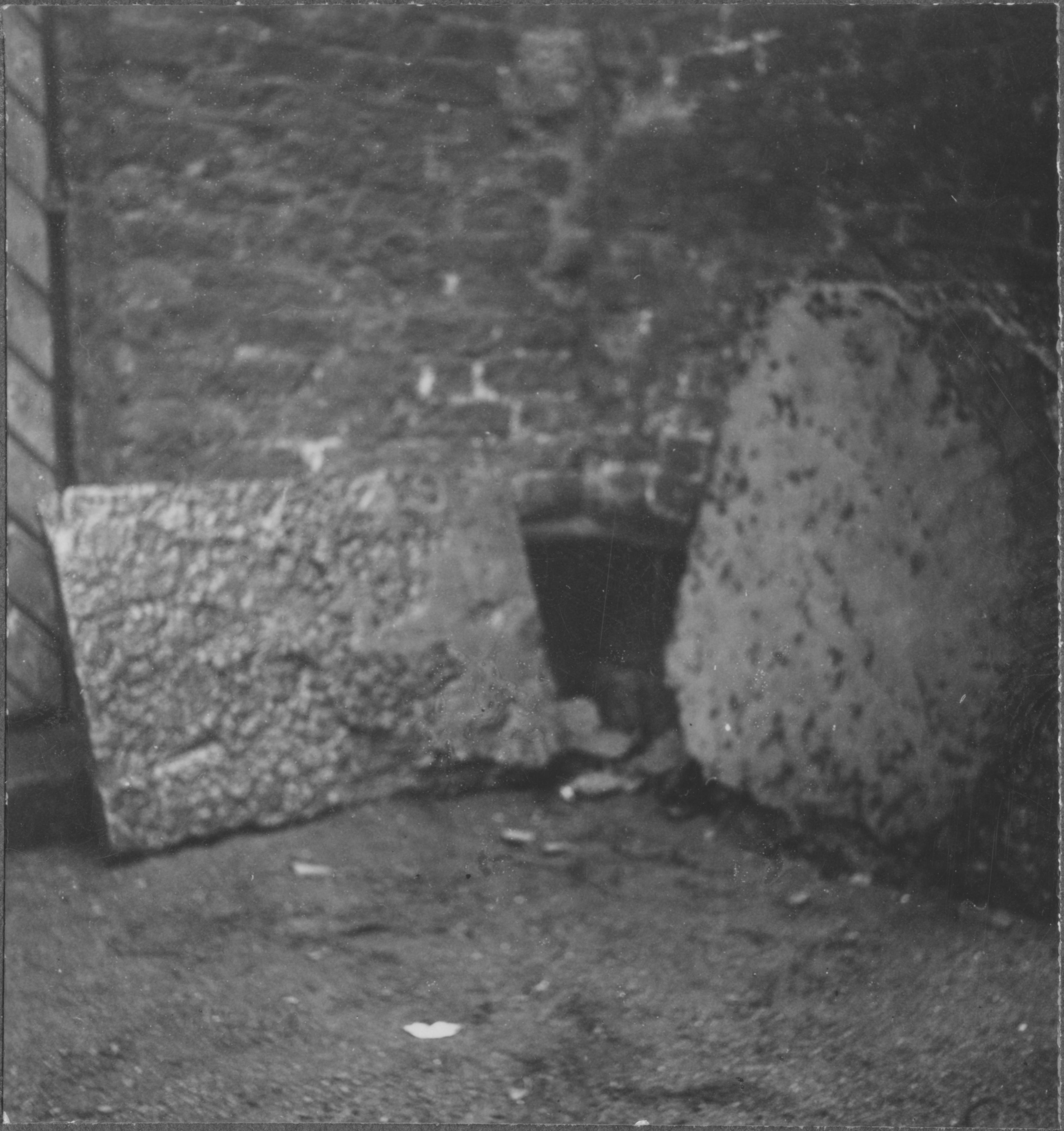Beskrivning: Gravhällar, två stycken, använda vid södra portens trappa.