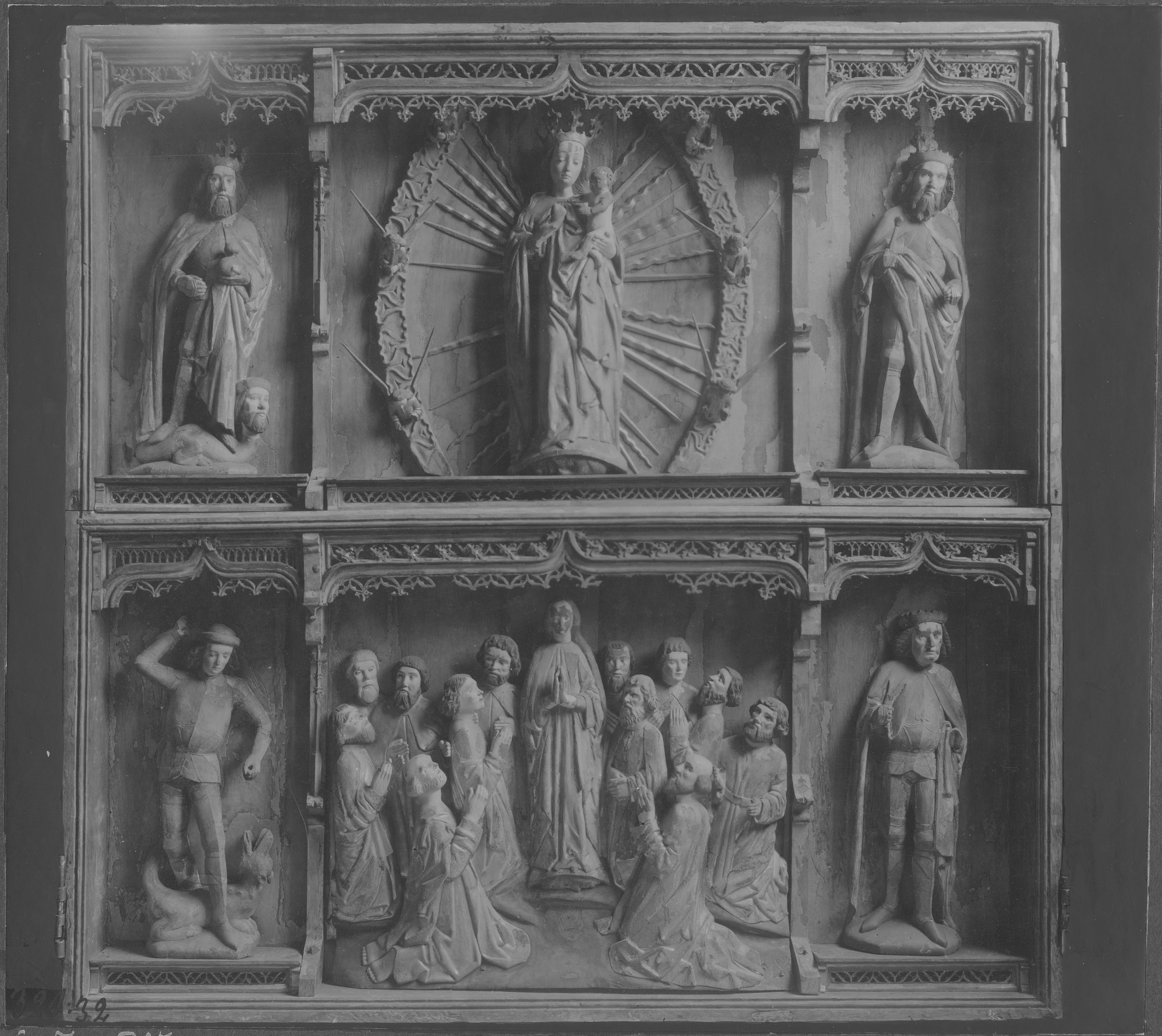 Beskrivning: Mittparti. tillhörande altarskåp från 1400-talets sista fjärdedel, nu i SHM.