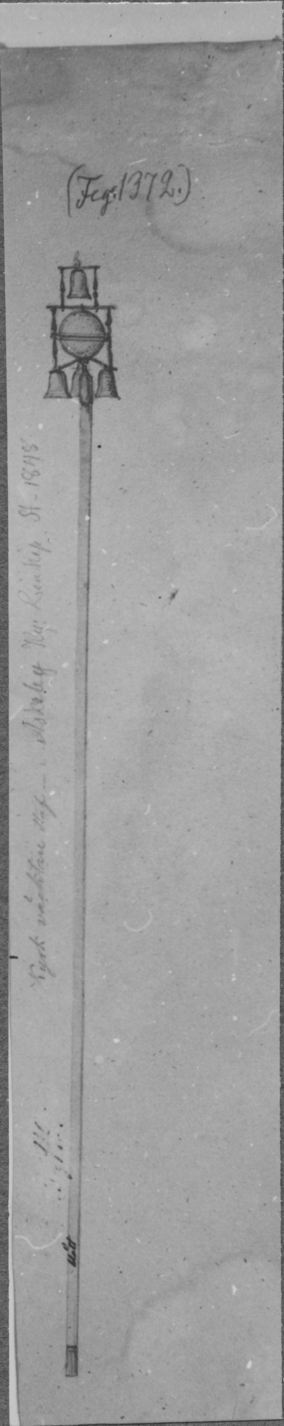 Beskrivning: Teckning föreställande kyrkvaktarstöt med bjällror.