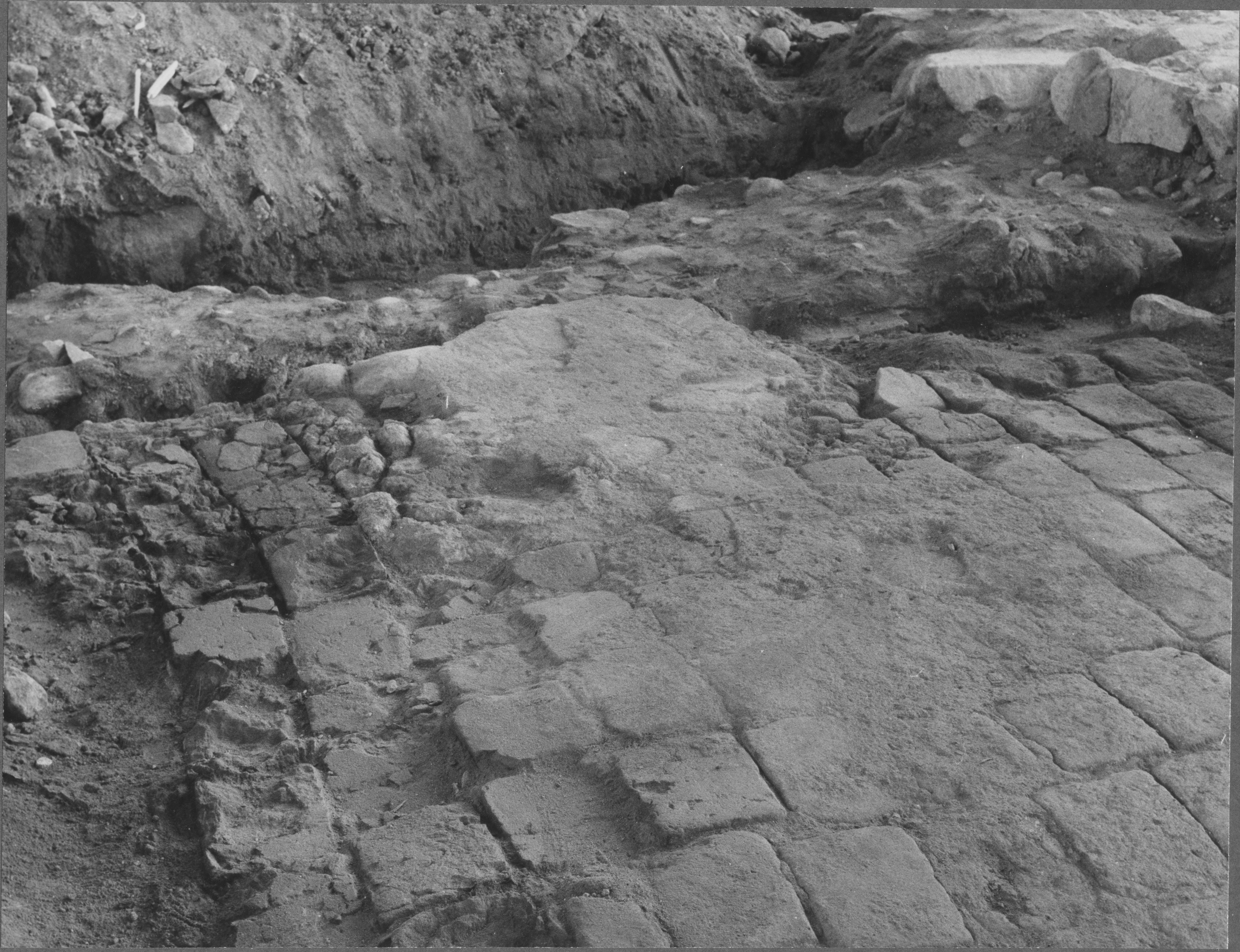 Beskrivning: Medeltidskyrkans långhus. Lekmannaaltarets tegelgolv och. Detalj.
