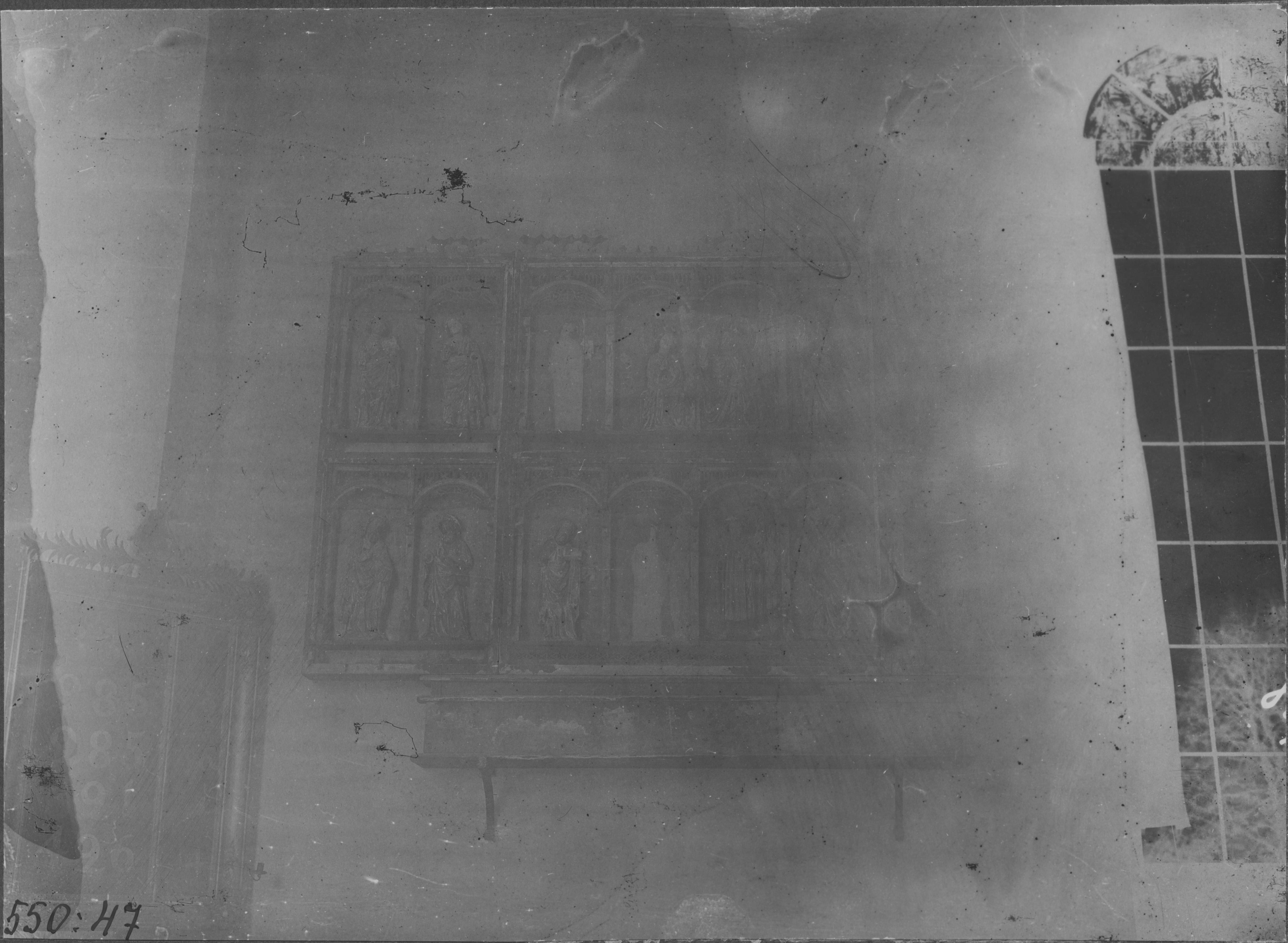 Beskrivning: Altarskåp med snidade och målade träfigurer.