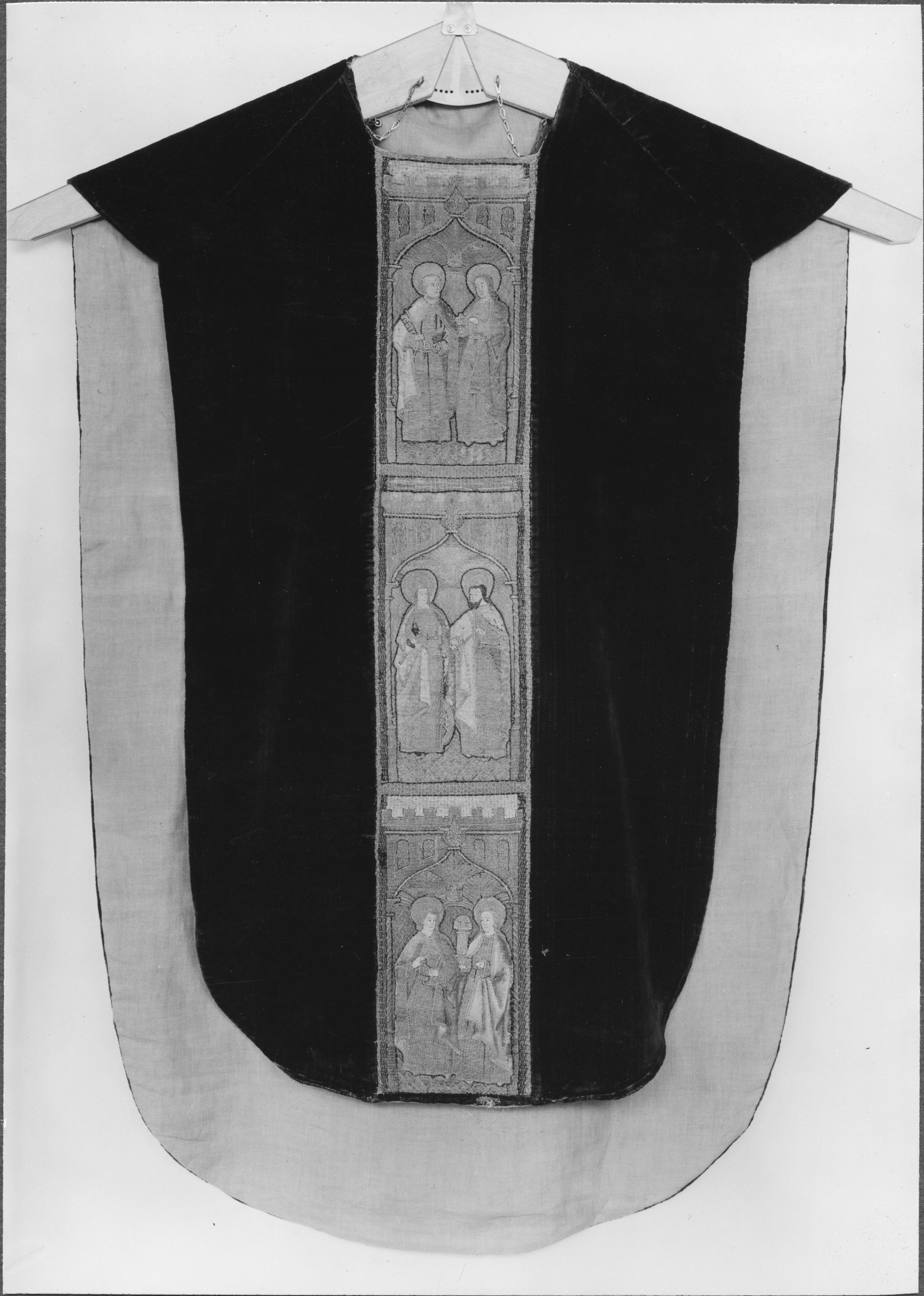 Beskrivning: Mässhake, med broderier. Framsida. Före konsververing.
