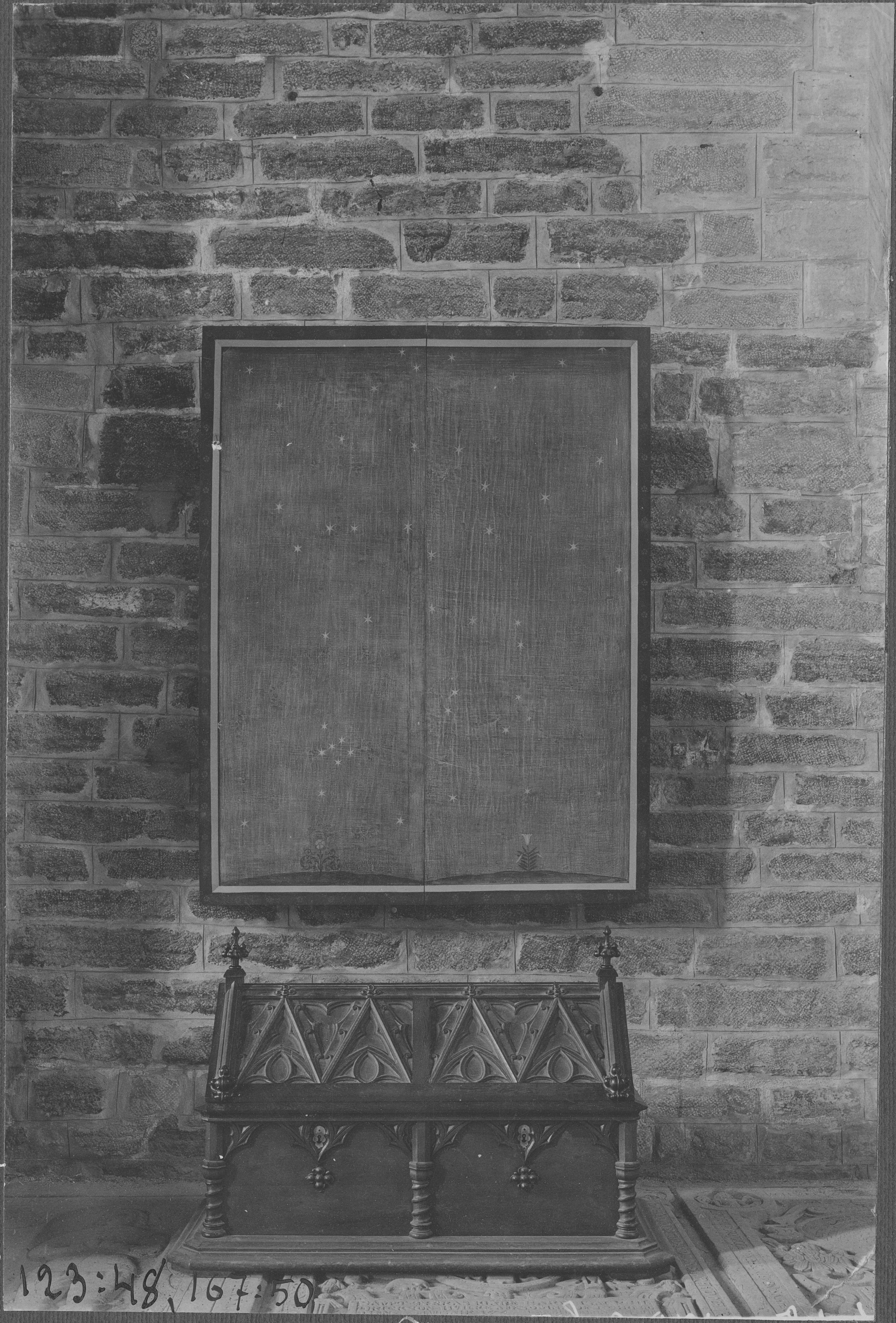 Beskrivning: Ytterkista till Heliga Birgittas relikskrin. Altartavla.