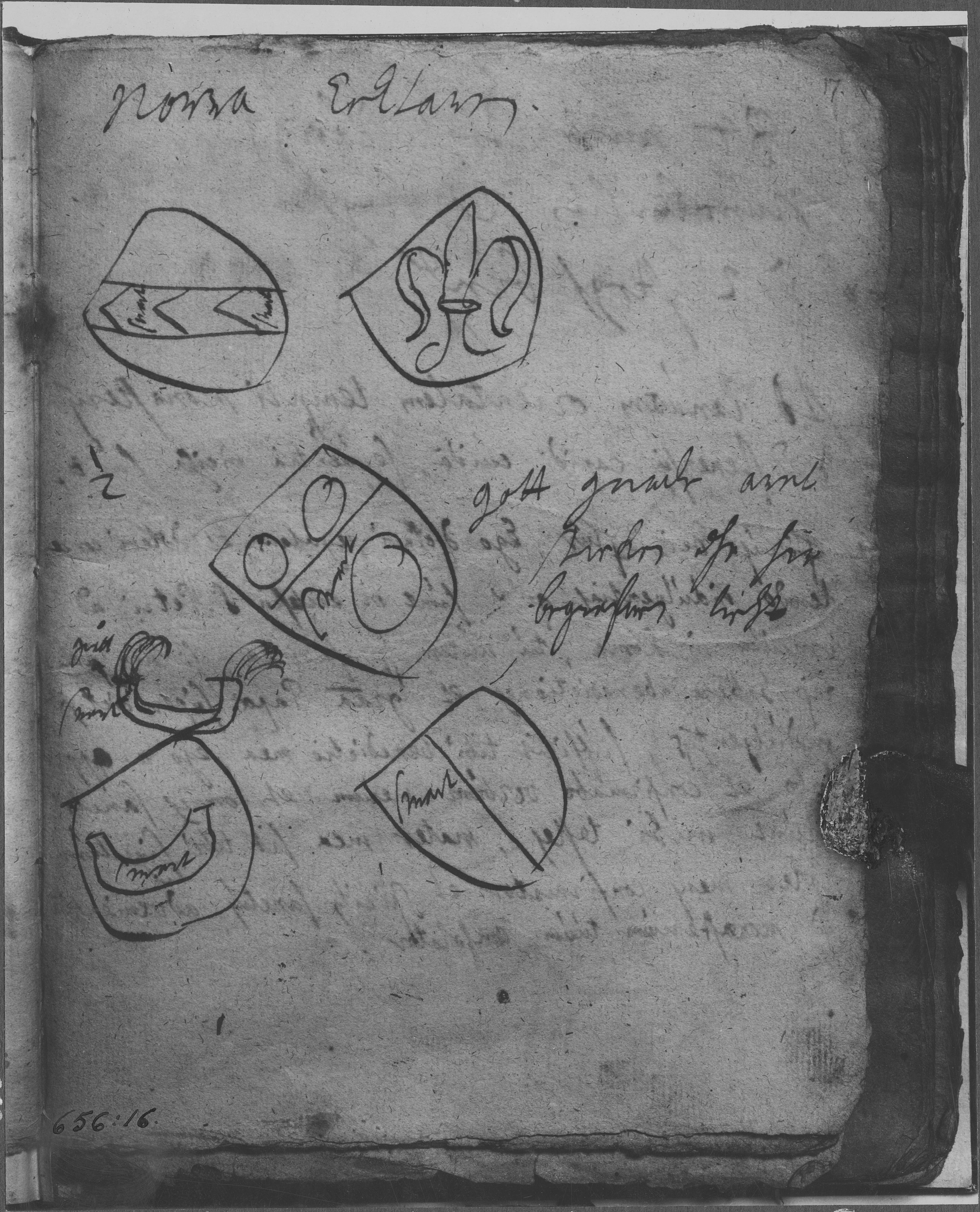 Beskrivning: Handskrift. "Gravstenar med mera antecknade av J Hadorph". Kungliga Biblioteket, handskrift. F.L 4d.