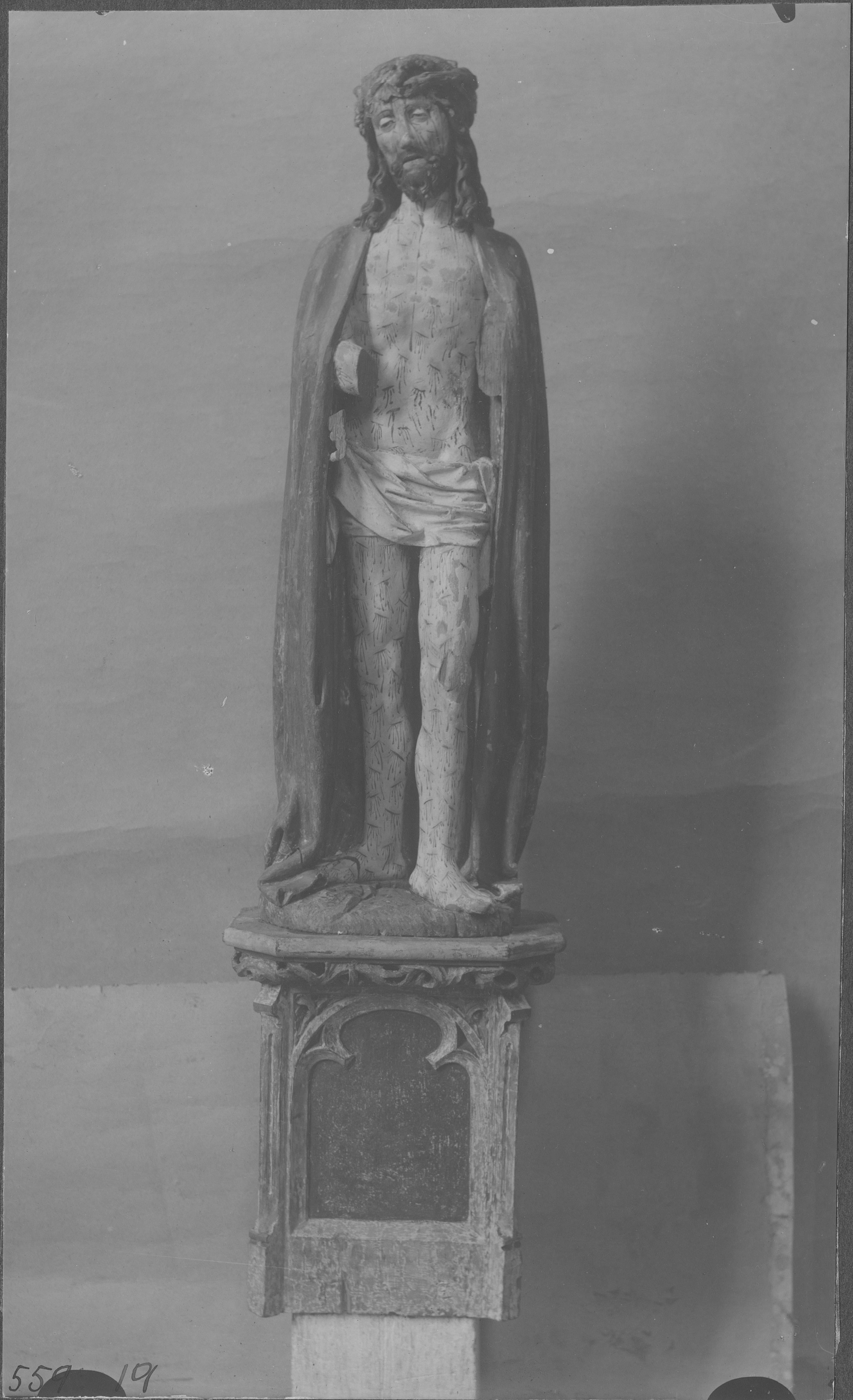 Från 1500-talets första fjärdedel. Detalj. Skulptur föreställande Kristus, överst på skåpet. Efter konservering.