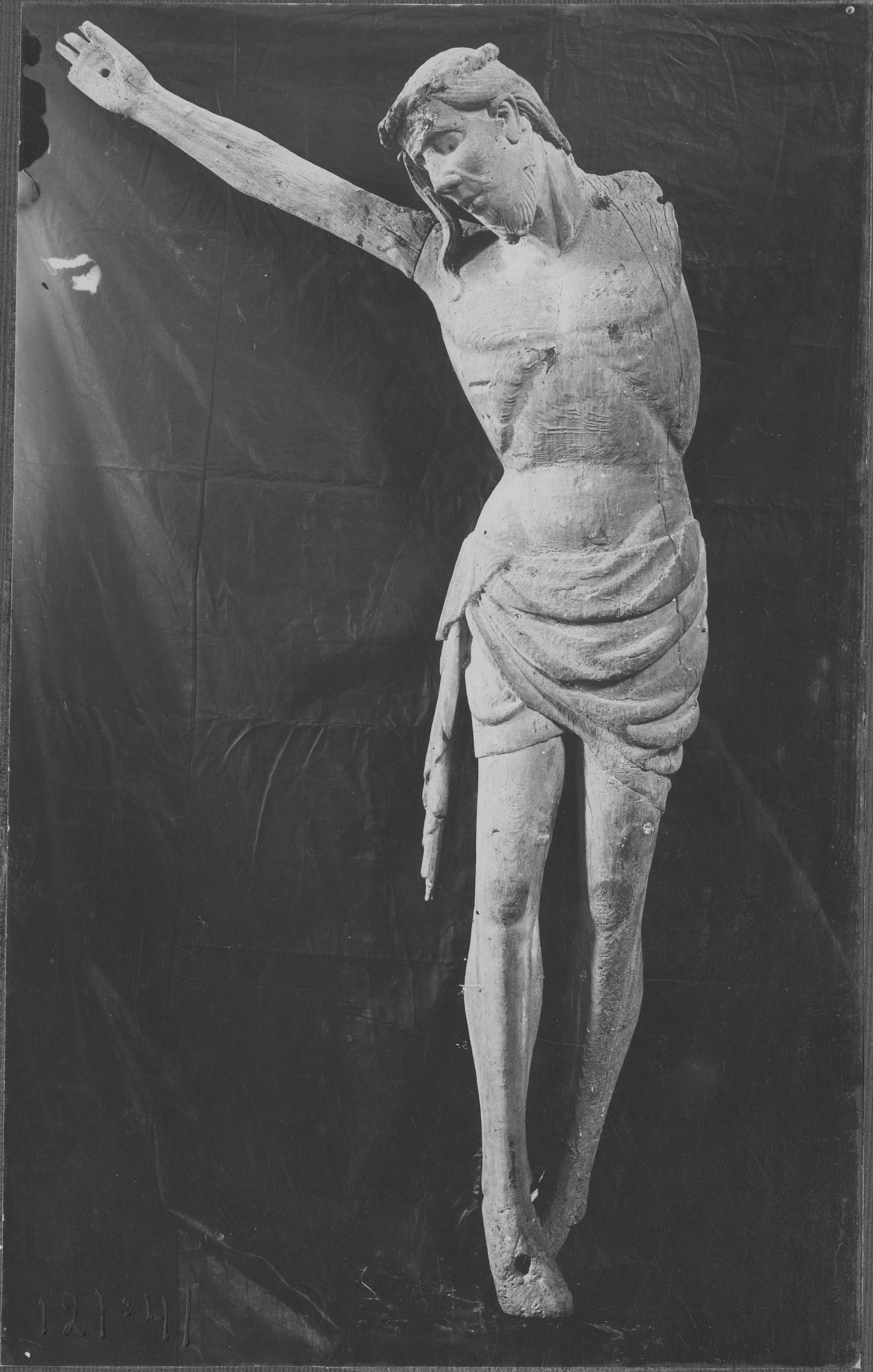 Beskrivning: Krucifix av ek från 1400-talest första hälft.