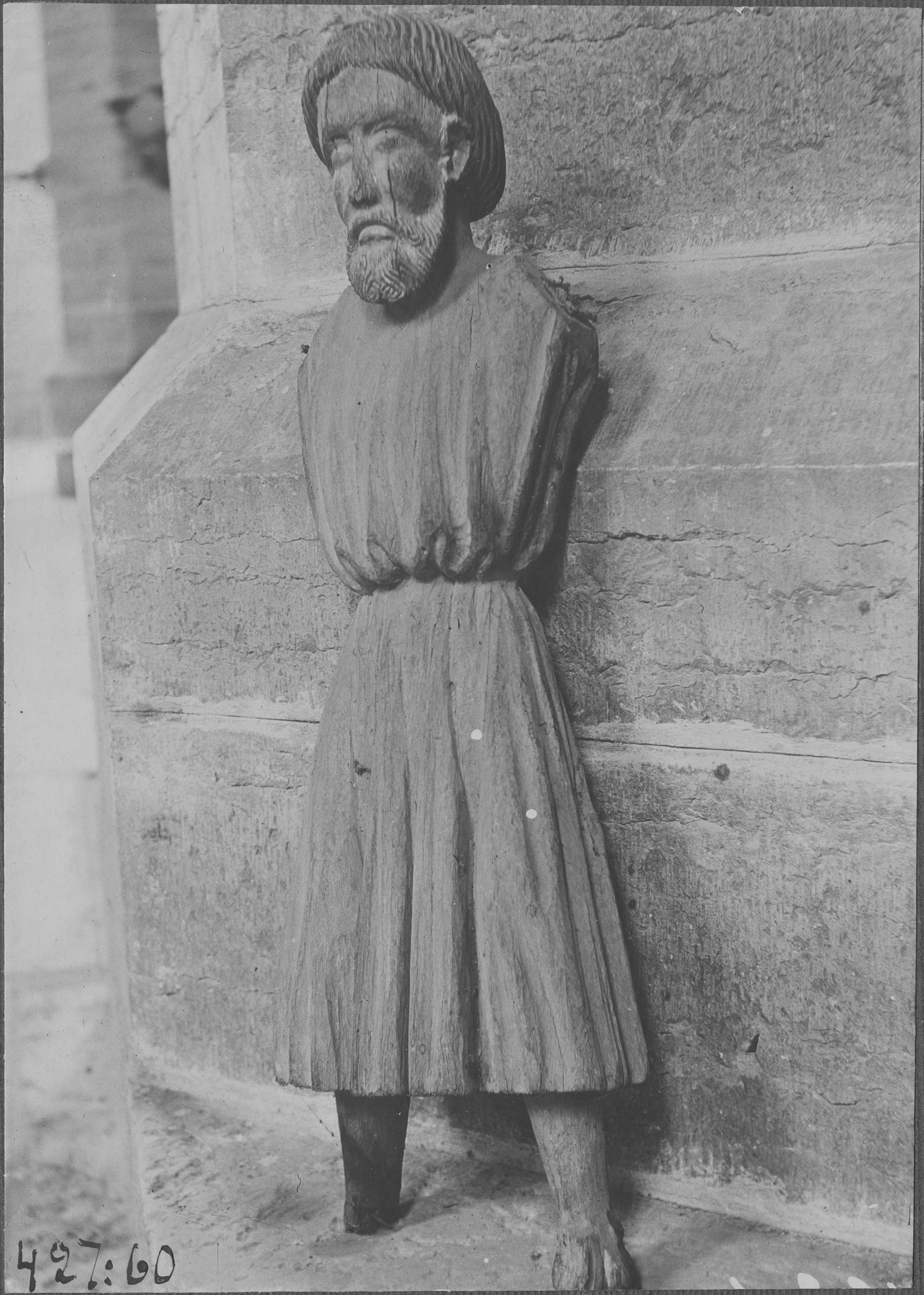 Beskrivning: Träskulptur av ek föreställande Andreas. Från mitten av 1400-talet.