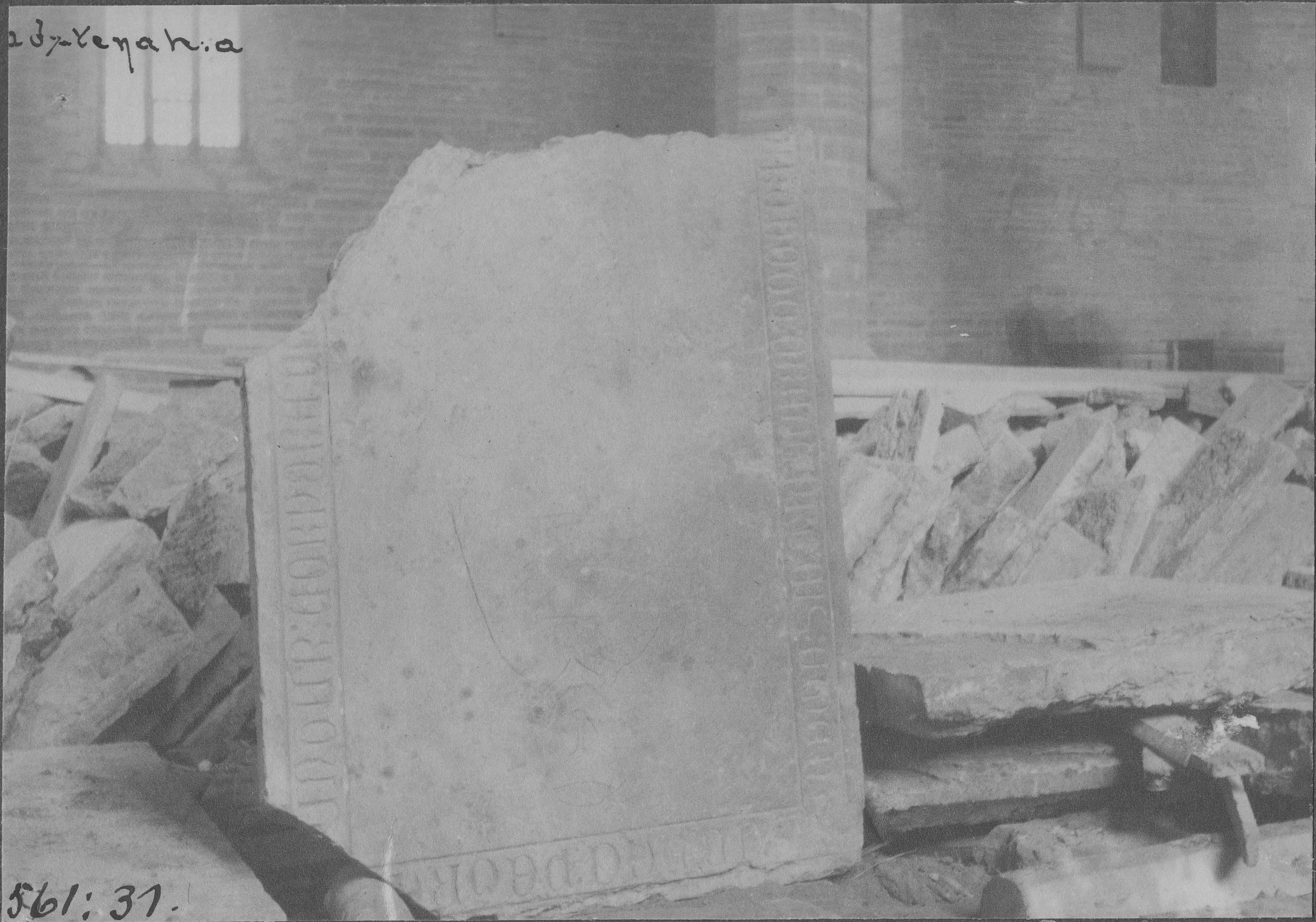 Beskrivning: Gravstenar. Omändring, restaurering av kyrkan under 1890-talet.