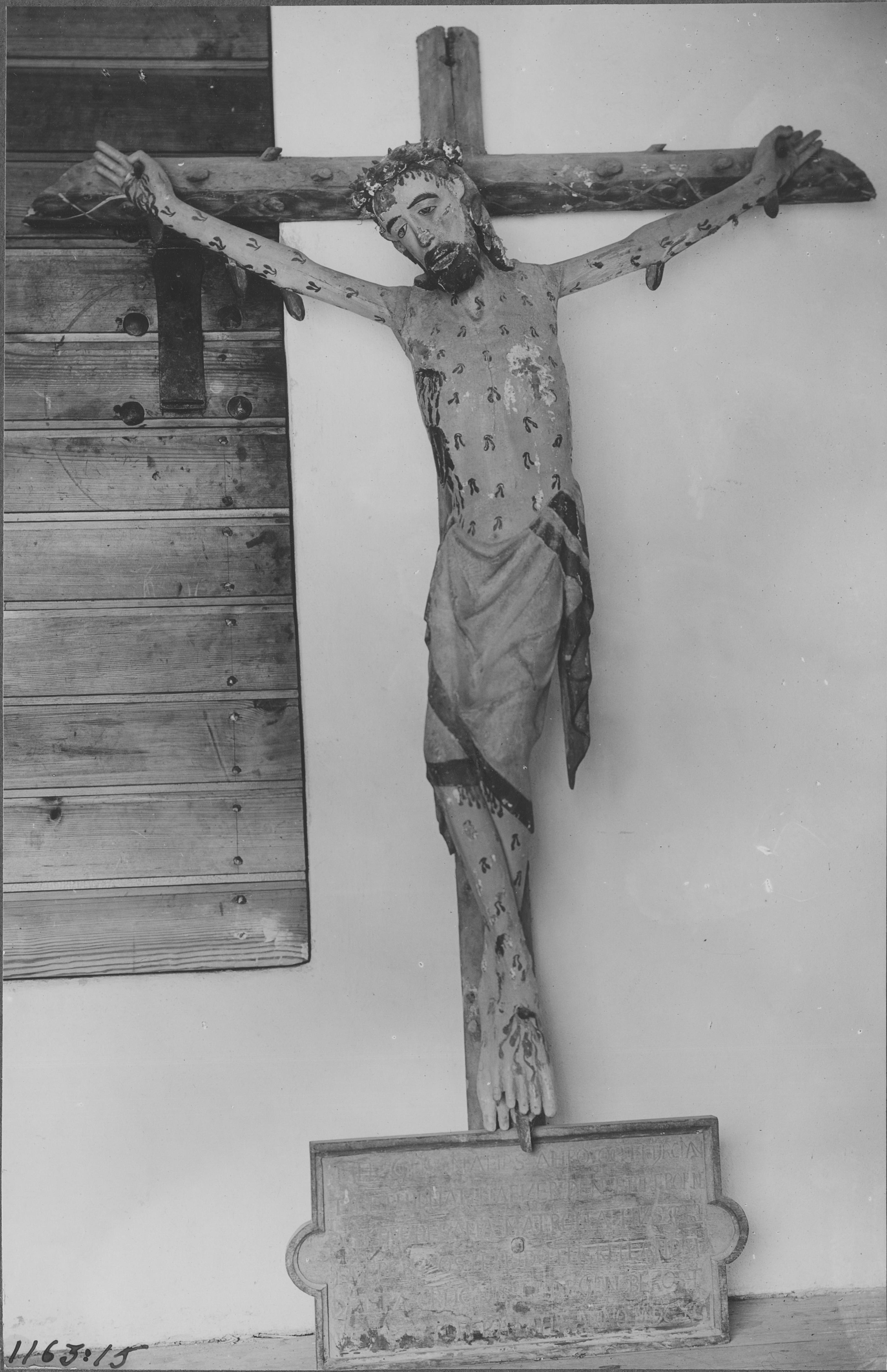 Beskrivning: Triumfkrucifix av trä. Omkring 1350.