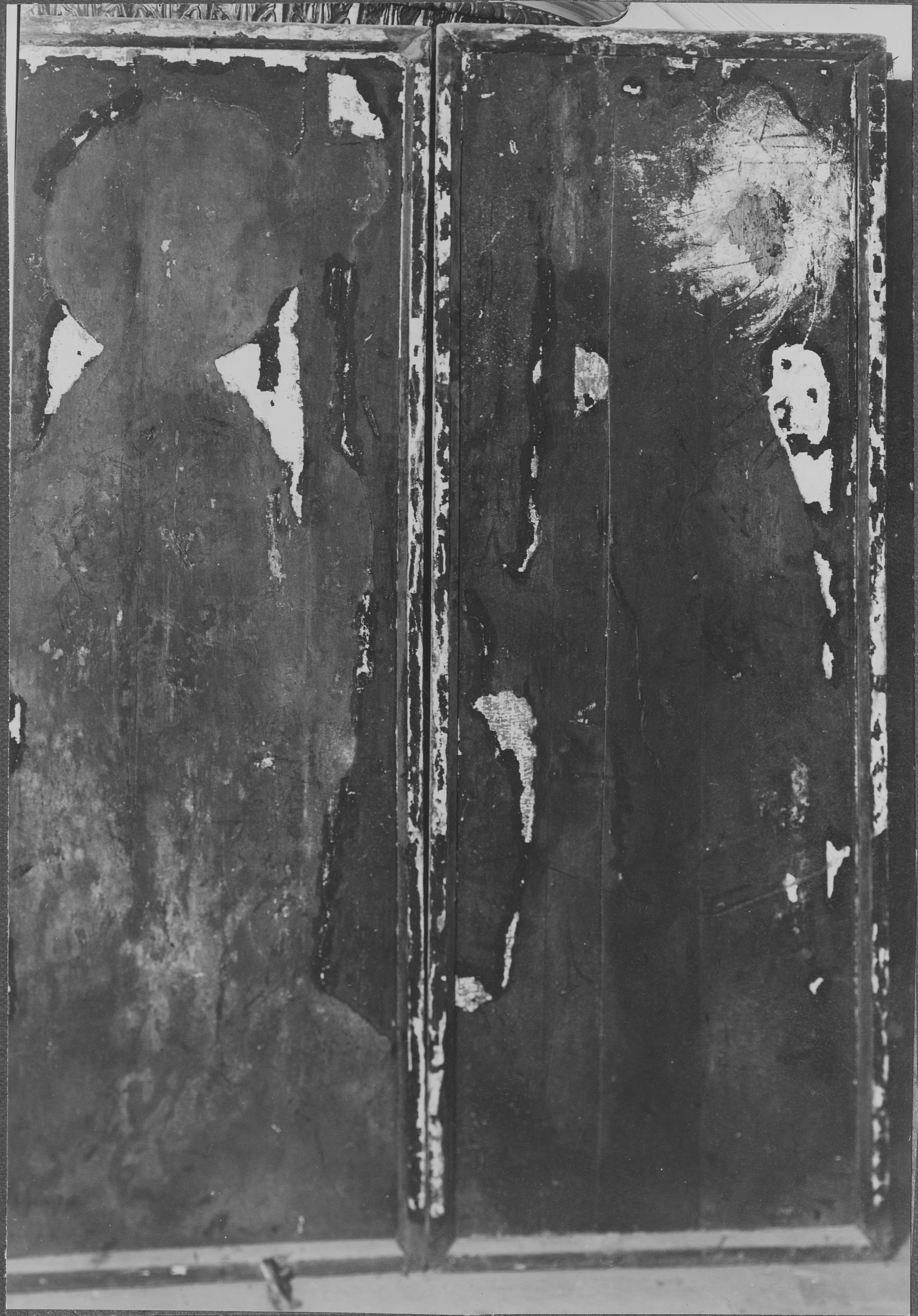 Beskrivning: Altarskåptes dörrar. Före konservering.