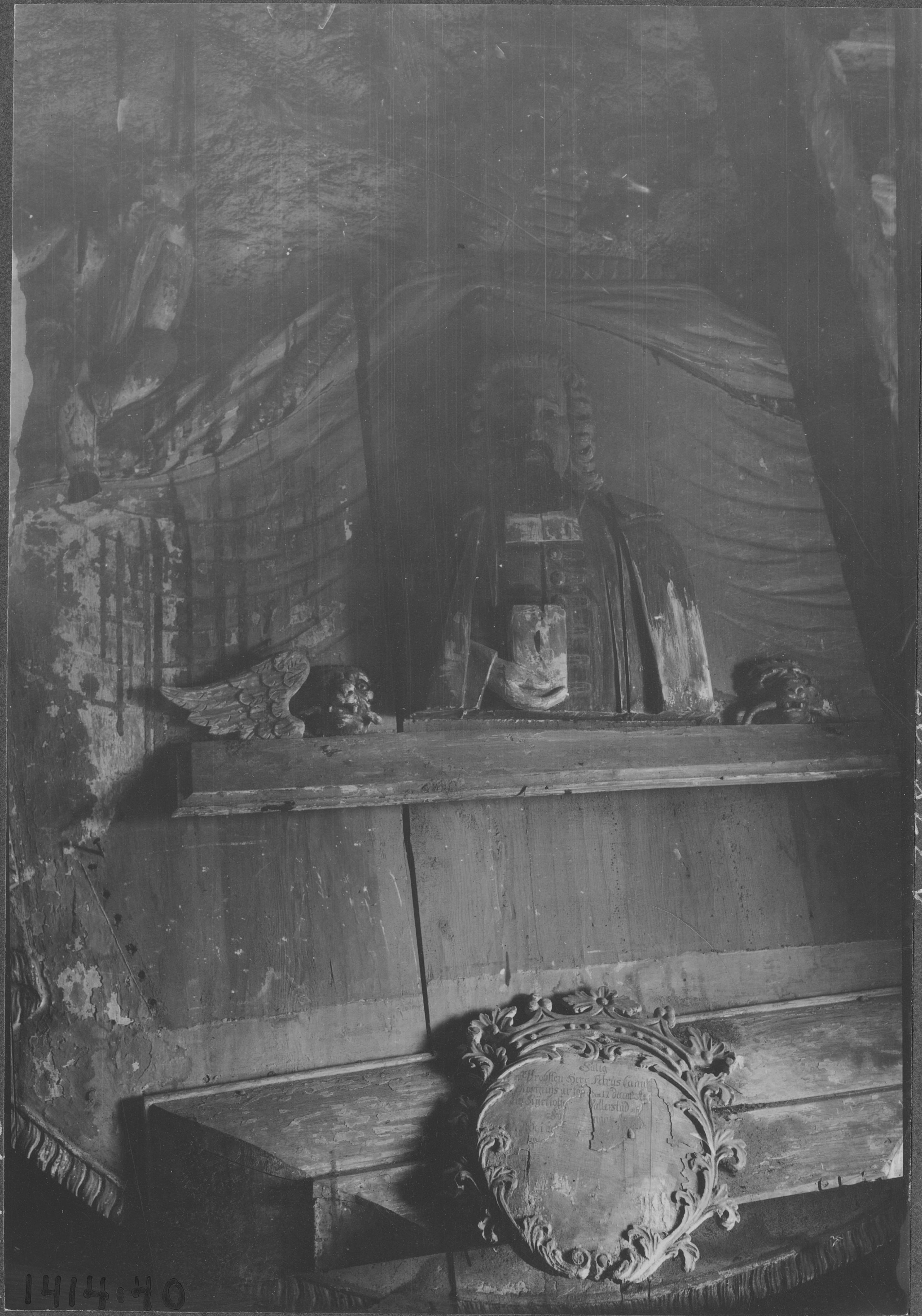 Beskrivning: Epitafium i trä över kyrkoherde Petrus Rosenius. Skulpterade figurer föreställande präst med bok i handen, änglar och döden. 1700-talets andra fjärdedel. Snabbinventering.