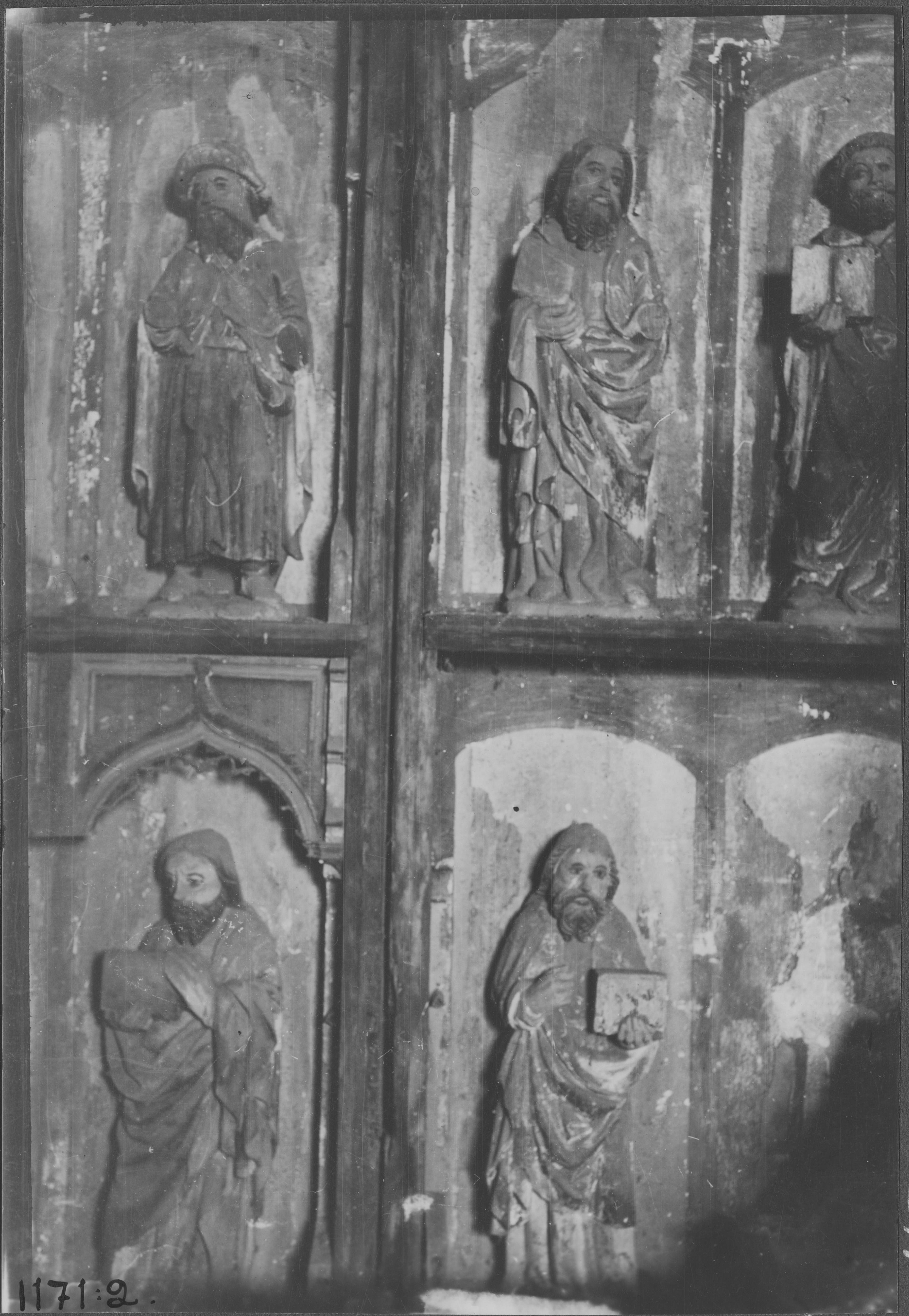 Beskrivning: Beskrivning: Altarskåp av ek. Detalj ur corpus och flygel. Upphovsman nordtyskt arbete. 1400-talets andra hälft. Snabbinventering.