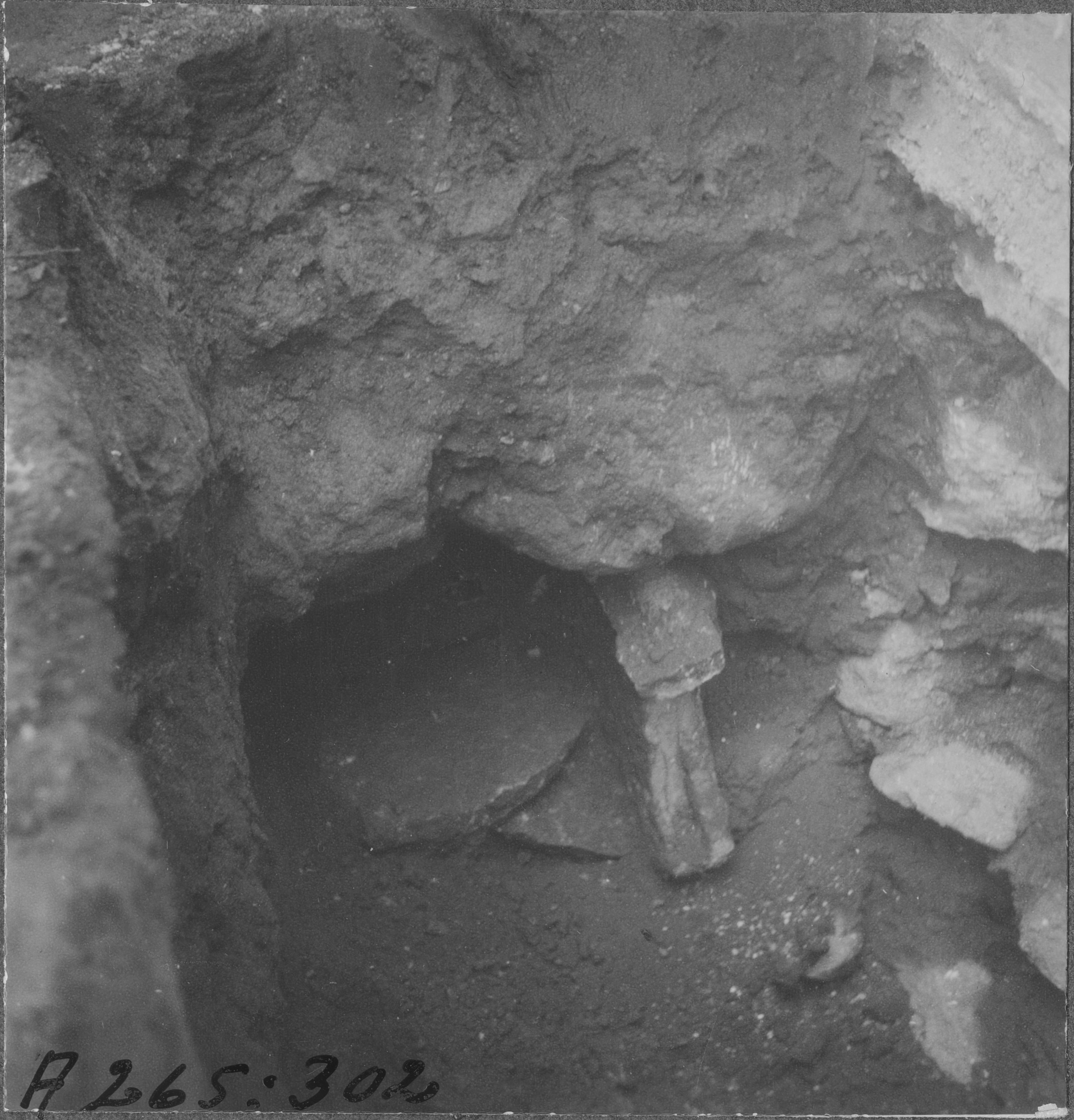 Beskrivning: Gravkistor av kalksten vid kyrkans södra mur.