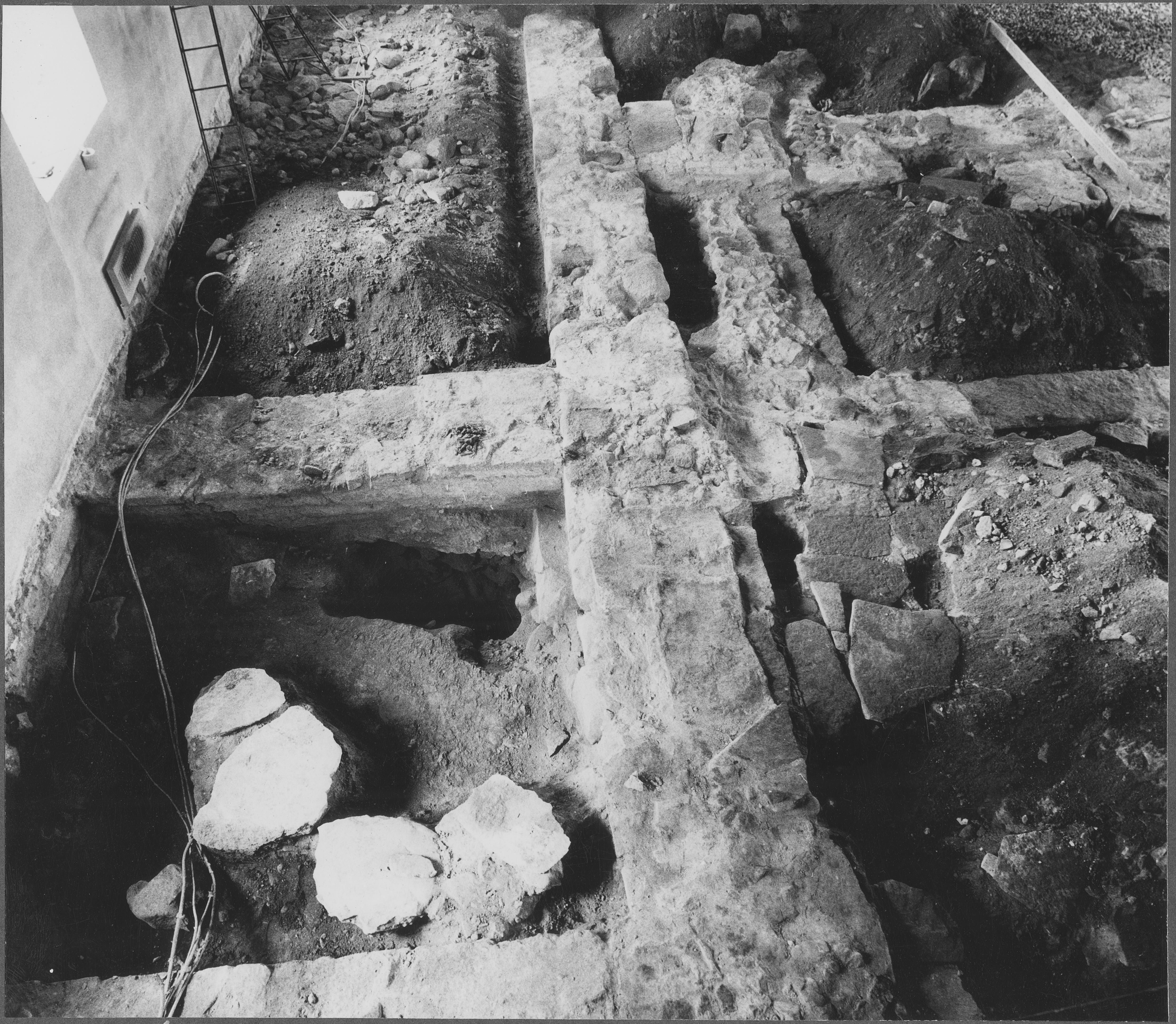 Beskrivning: Norra sidans gamla grundmurar från väster.