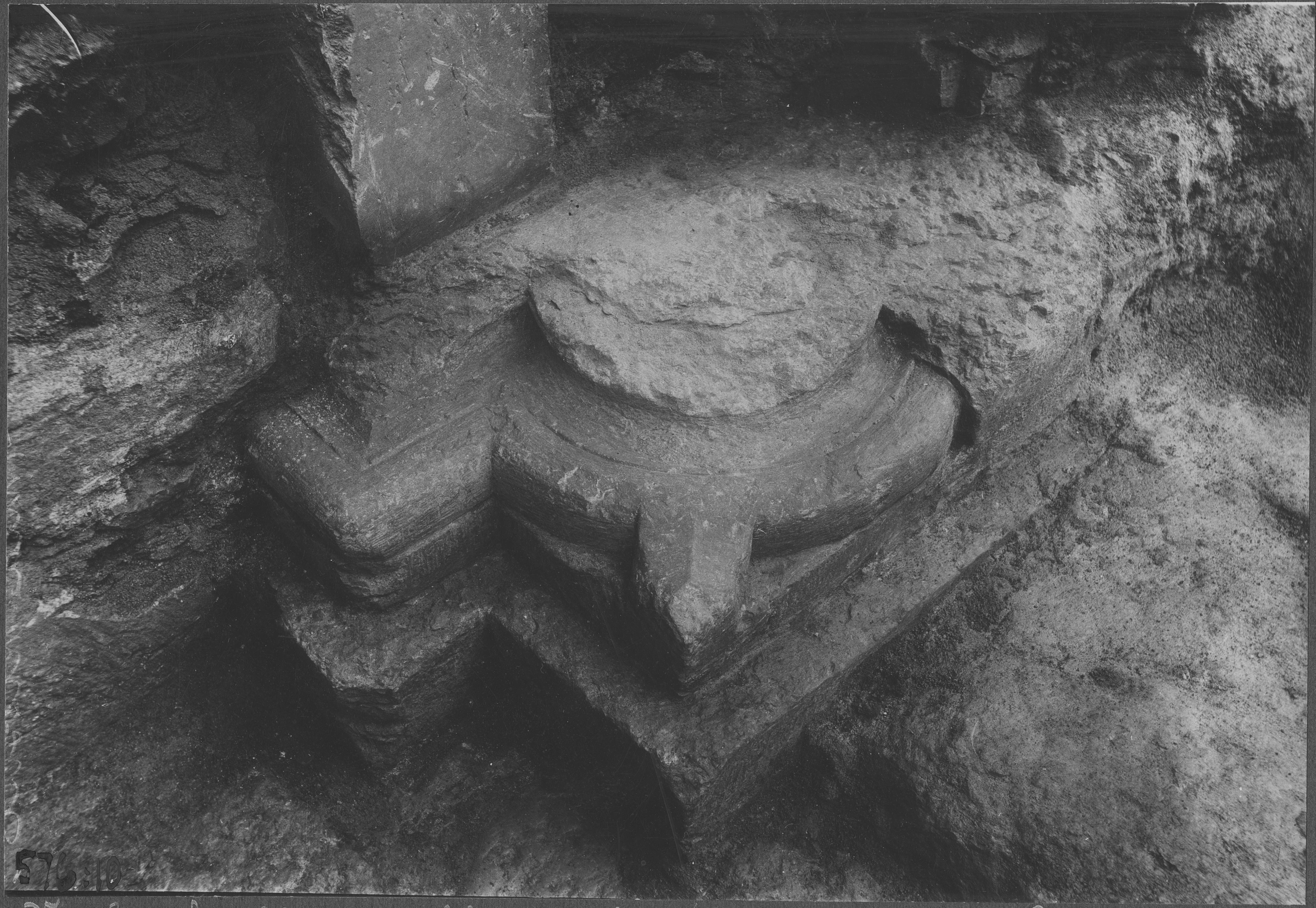 Beskrivning: Detalj av kolonnbas vid norra förhallens yttersida.