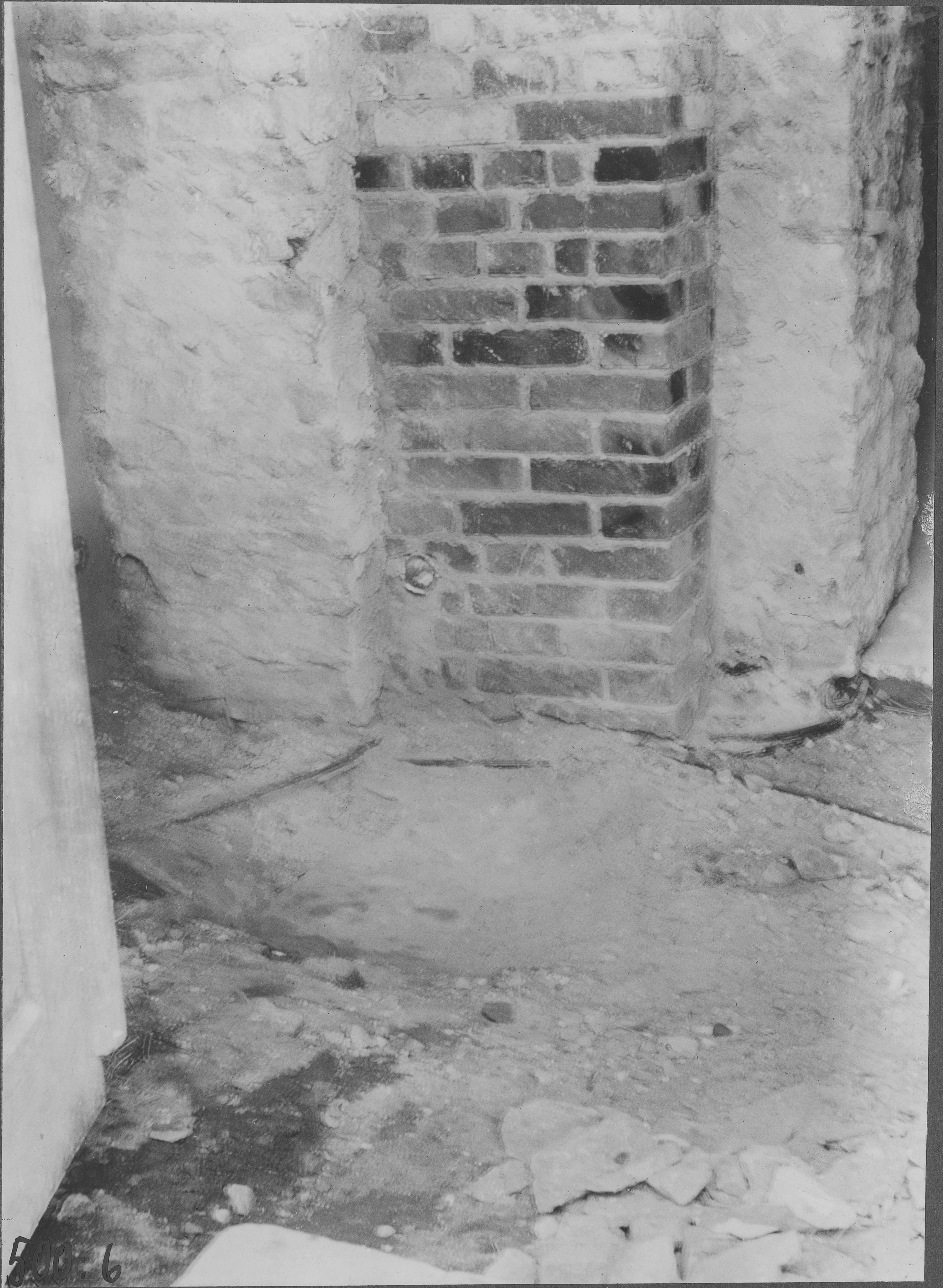Beskrivning: Västra porten. Tegelmurningen nyuppförd vid restaureringen.