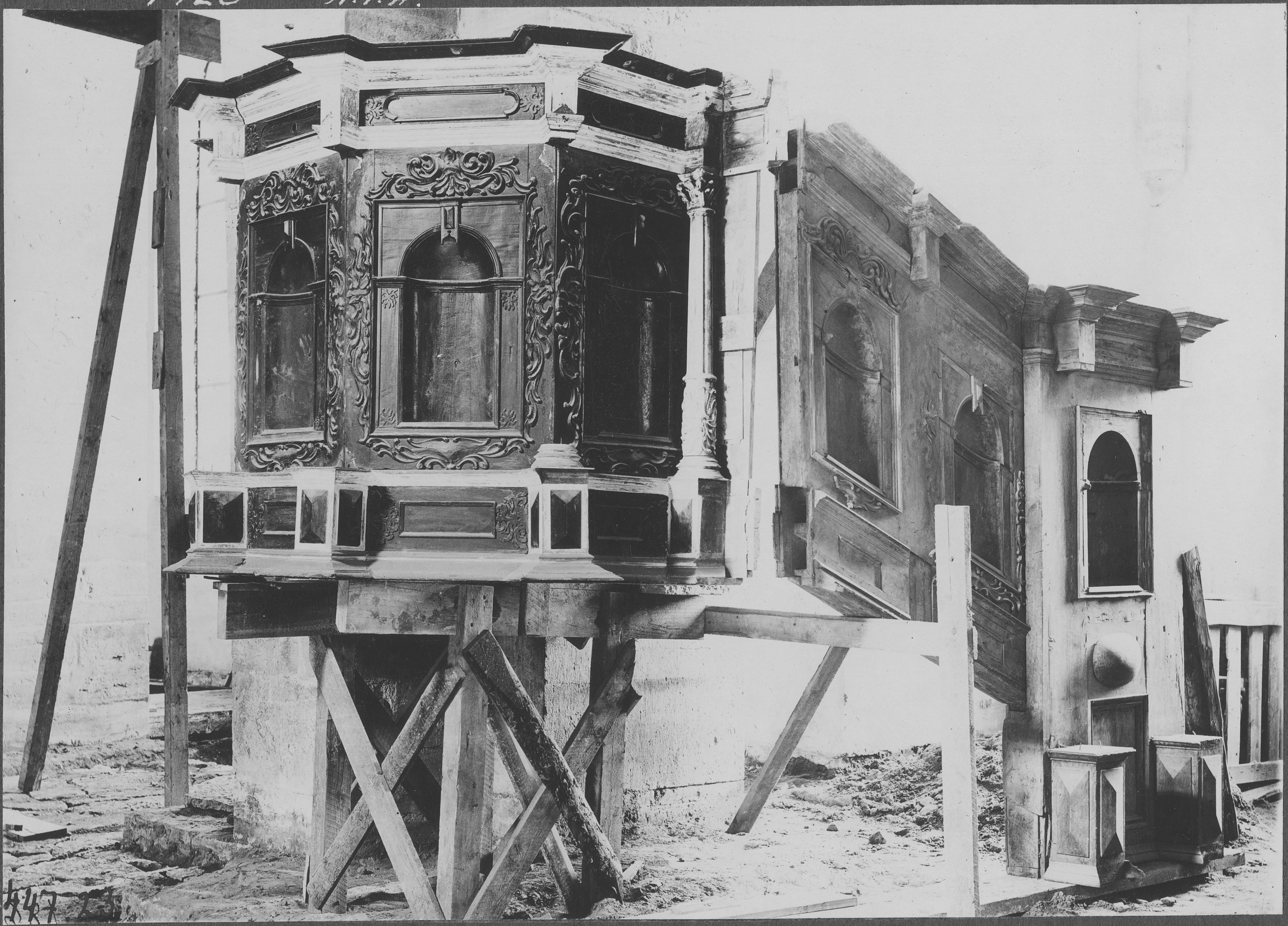 Beskrivning: Predikstolen före restaurering.