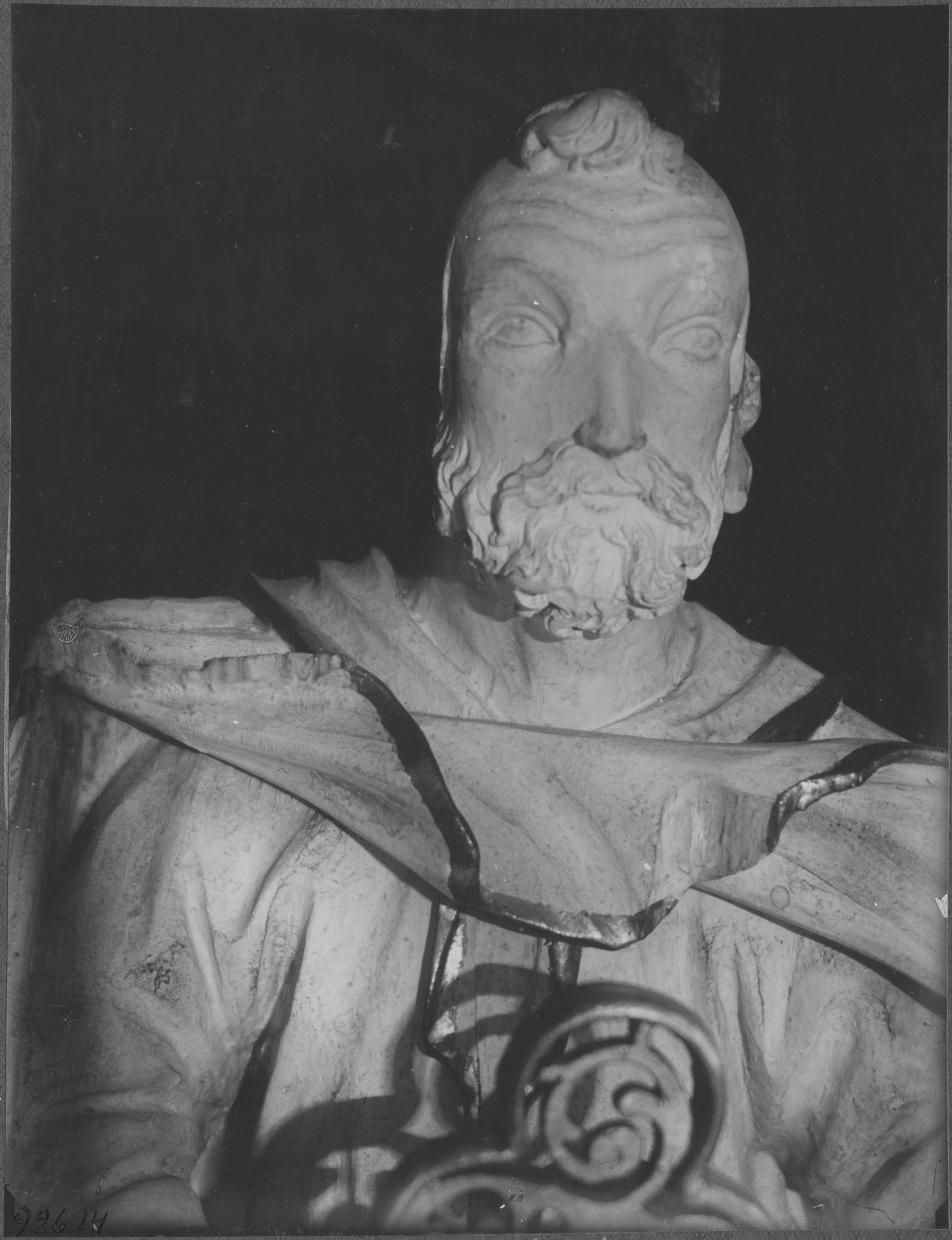 Beskrivning: Detalj av predikstolen, aposteln Petrus.