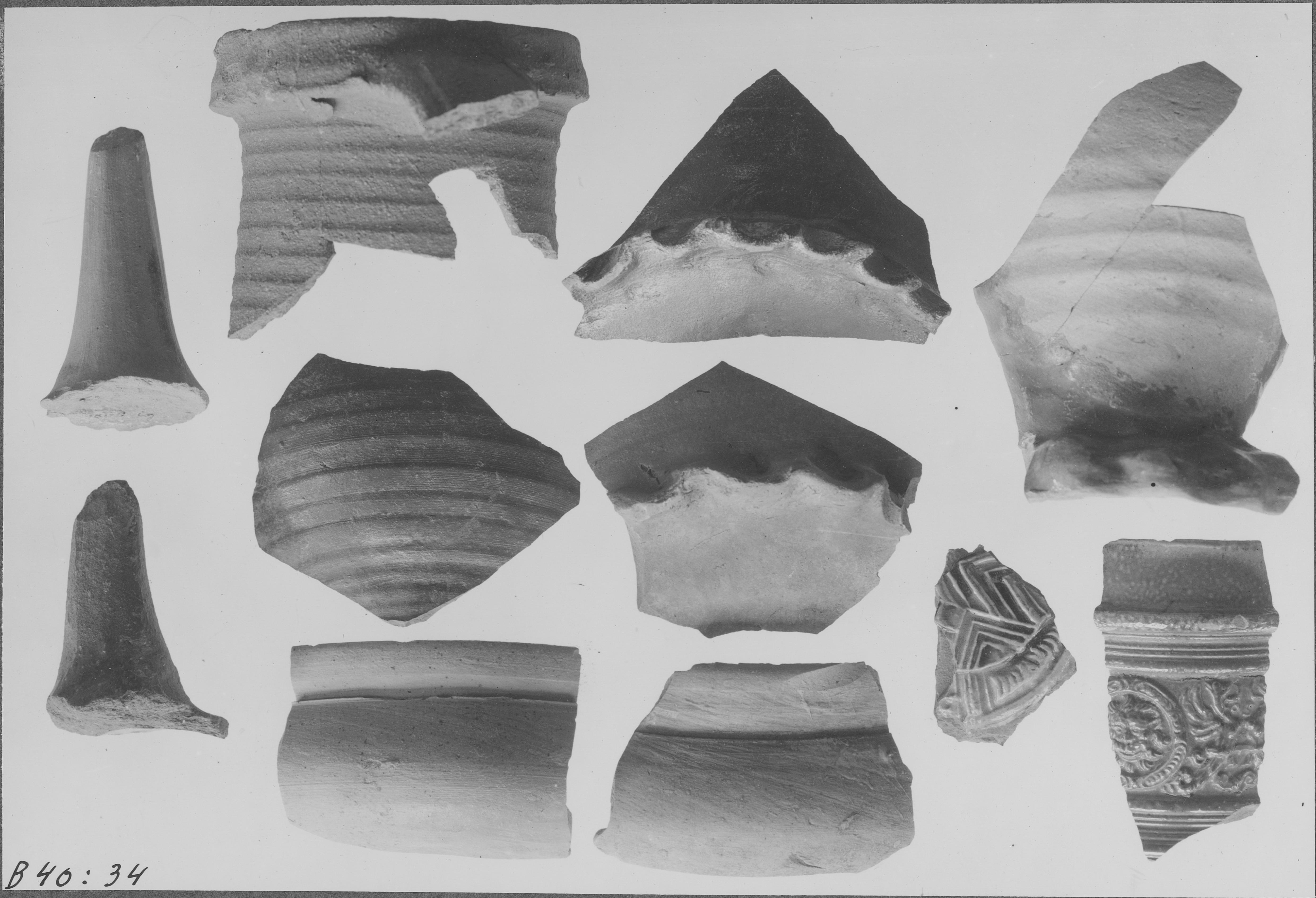 Beskrivning: Senmedeltida stengods, delar från Tyskland. SHM invnr 18011. Deposition i Vreta kloster.