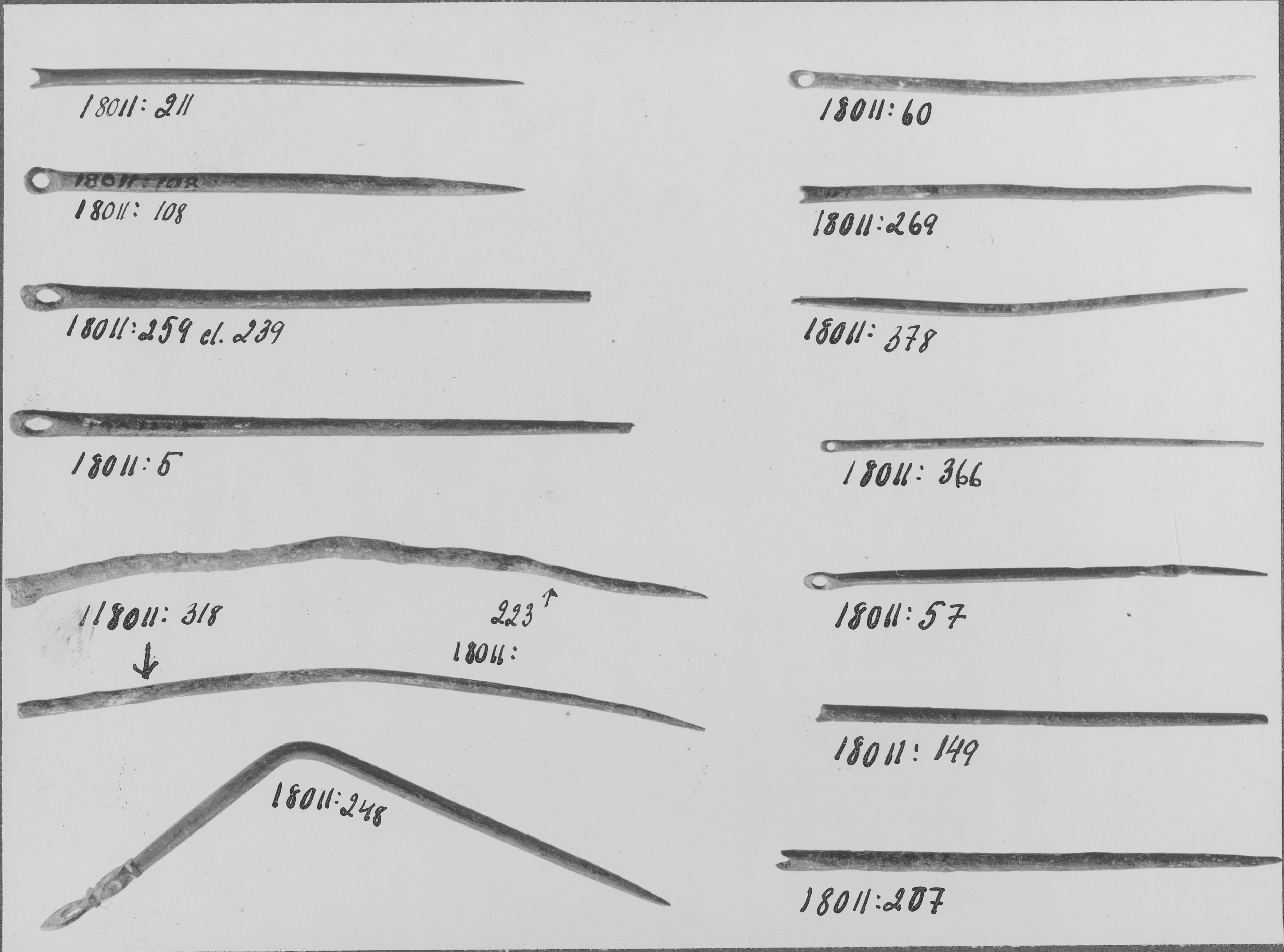 Beskrivning: Nålar av brons. SHM invnr 18011. Deposition i Vreta kloster.