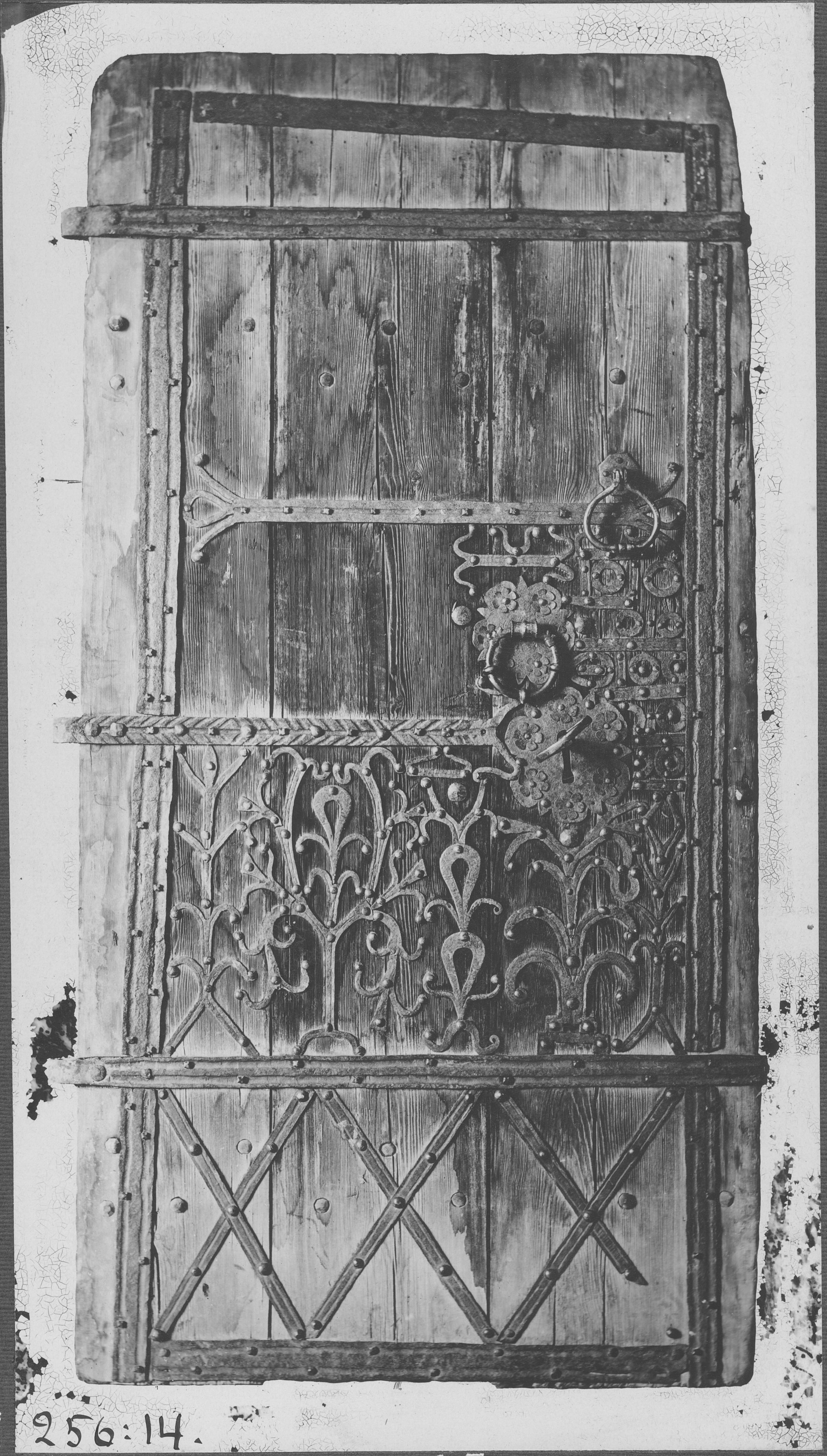 Beskrivning: Medeltida järnsmidd dörr från gamla kyrkan, nu Historiska museet.