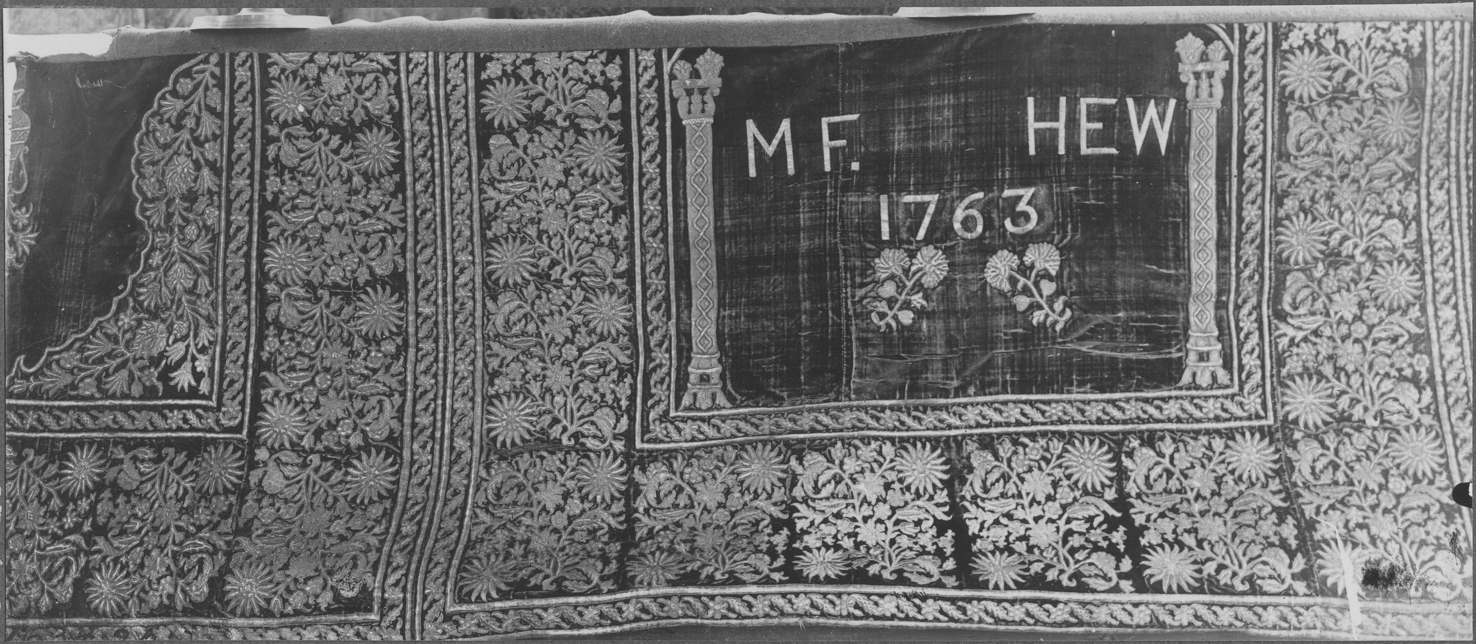 Beskrivning: Antependium i röd sammet med guldbroderi, daterat 1763, med bokstäverna MF. samt HEW. Från snabbinventeringen.