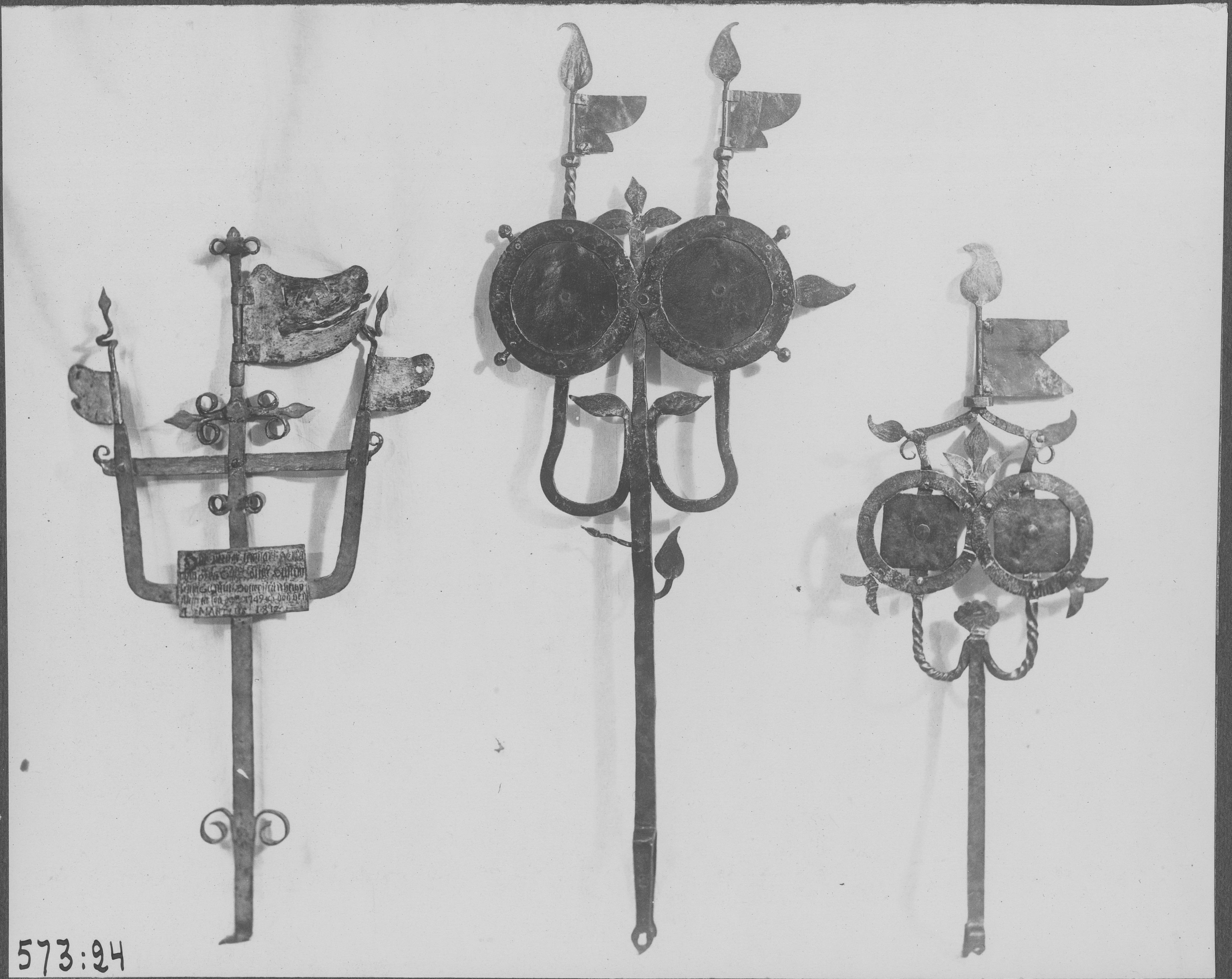 Beskrivning: Gravvårdar av smidesjärn från 1700- och 1800-talen. Efter konservering.