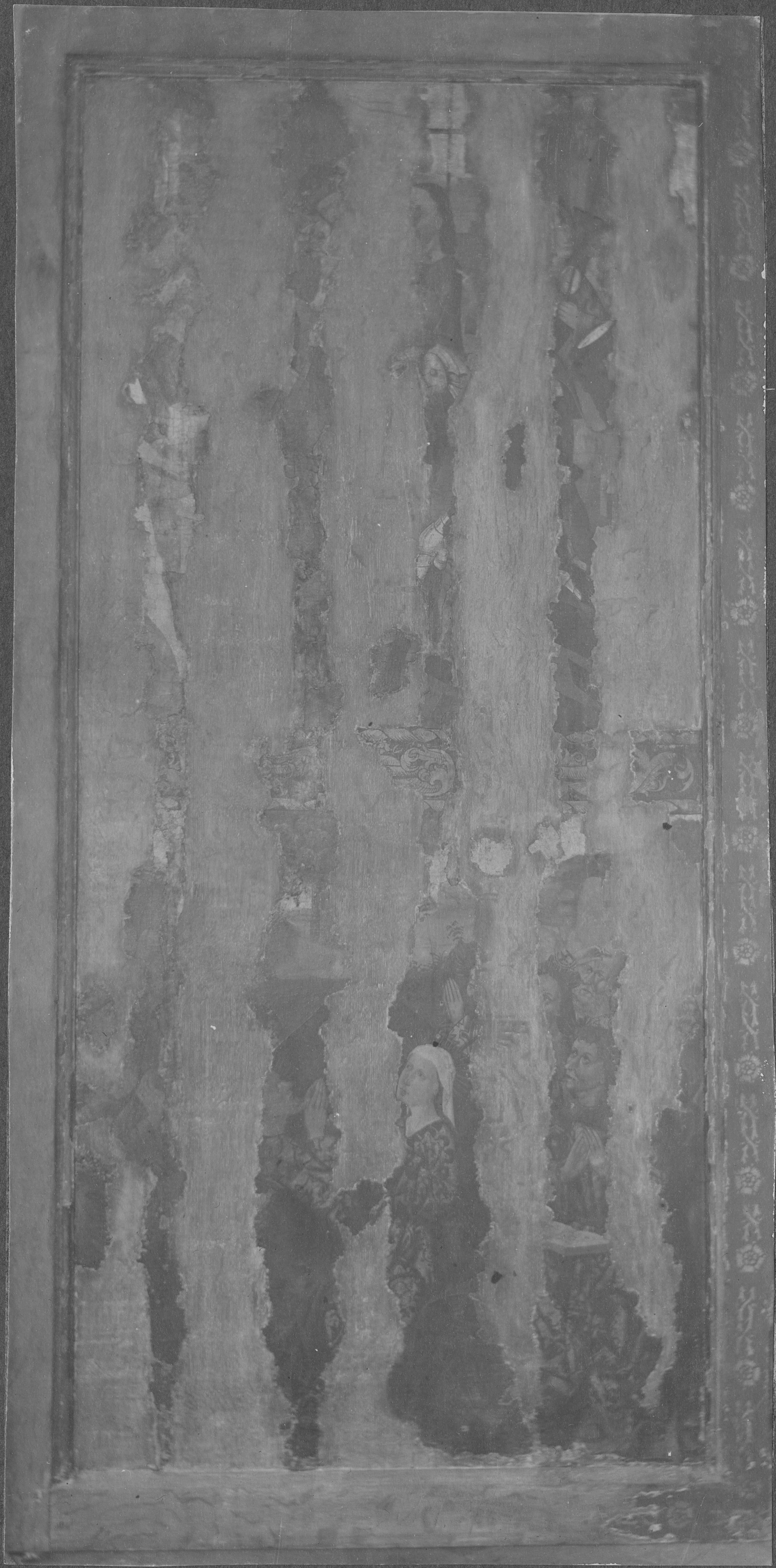 Beskrivning: Fragment av Kristus inför Pilatus och Himmelsfärden. Dörr till altarskåpet från 1400-talets sista fjärdedel, nu i SHM. Foto efter konservering.