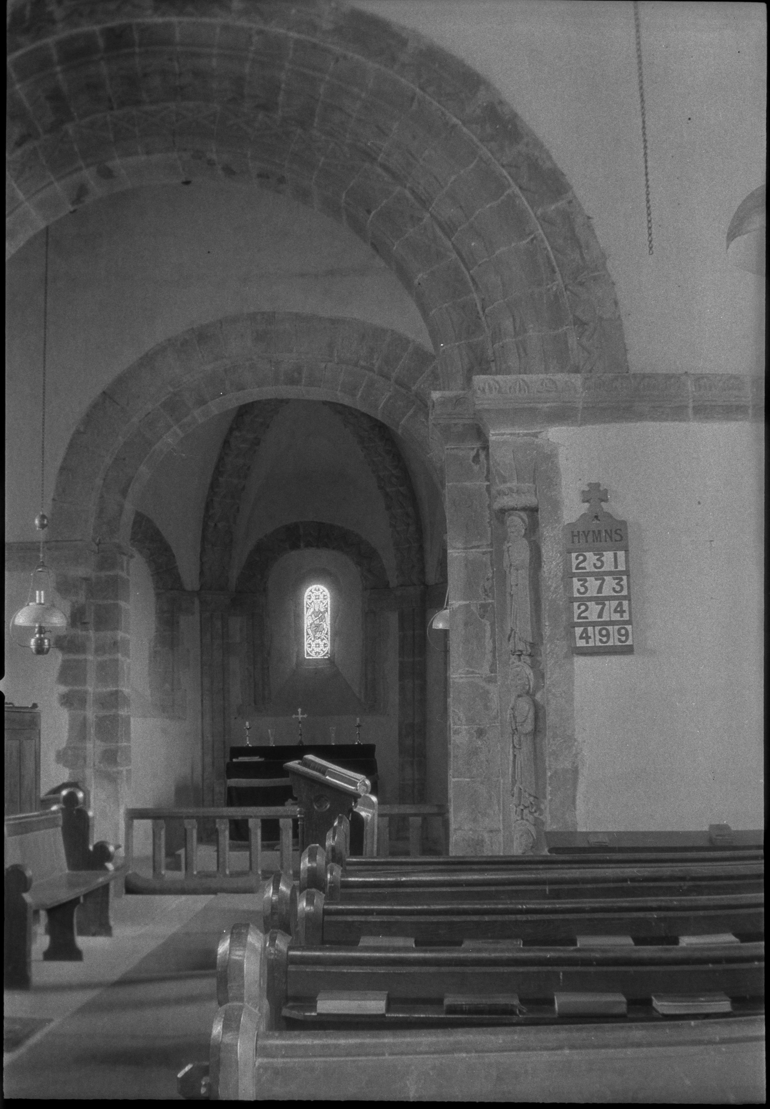 Beskrivning: Kilpeck Church. Interiör mot öster.
