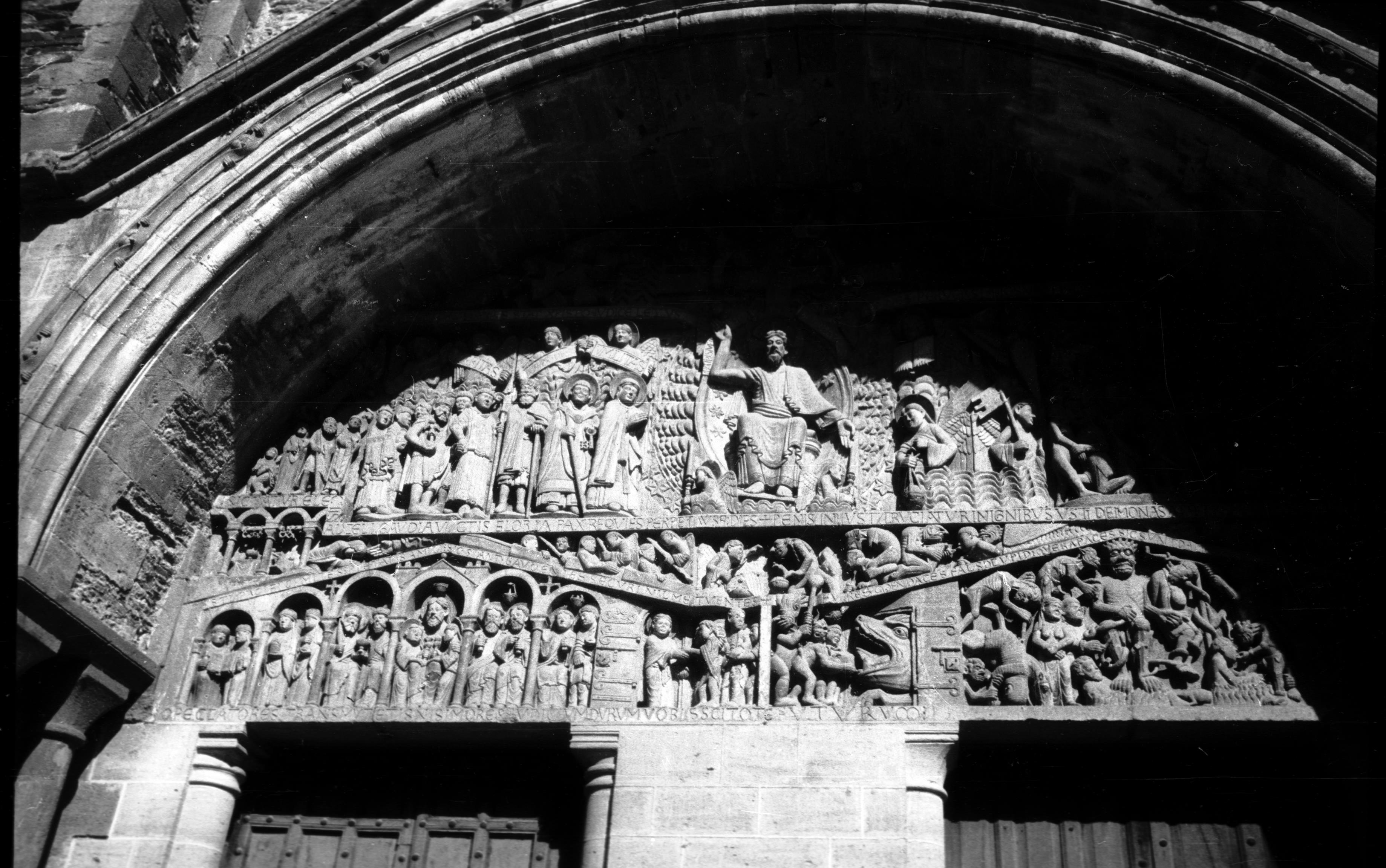 Beskrivning: Abbaye de Sainte-Foy. Västportalens tympanon.