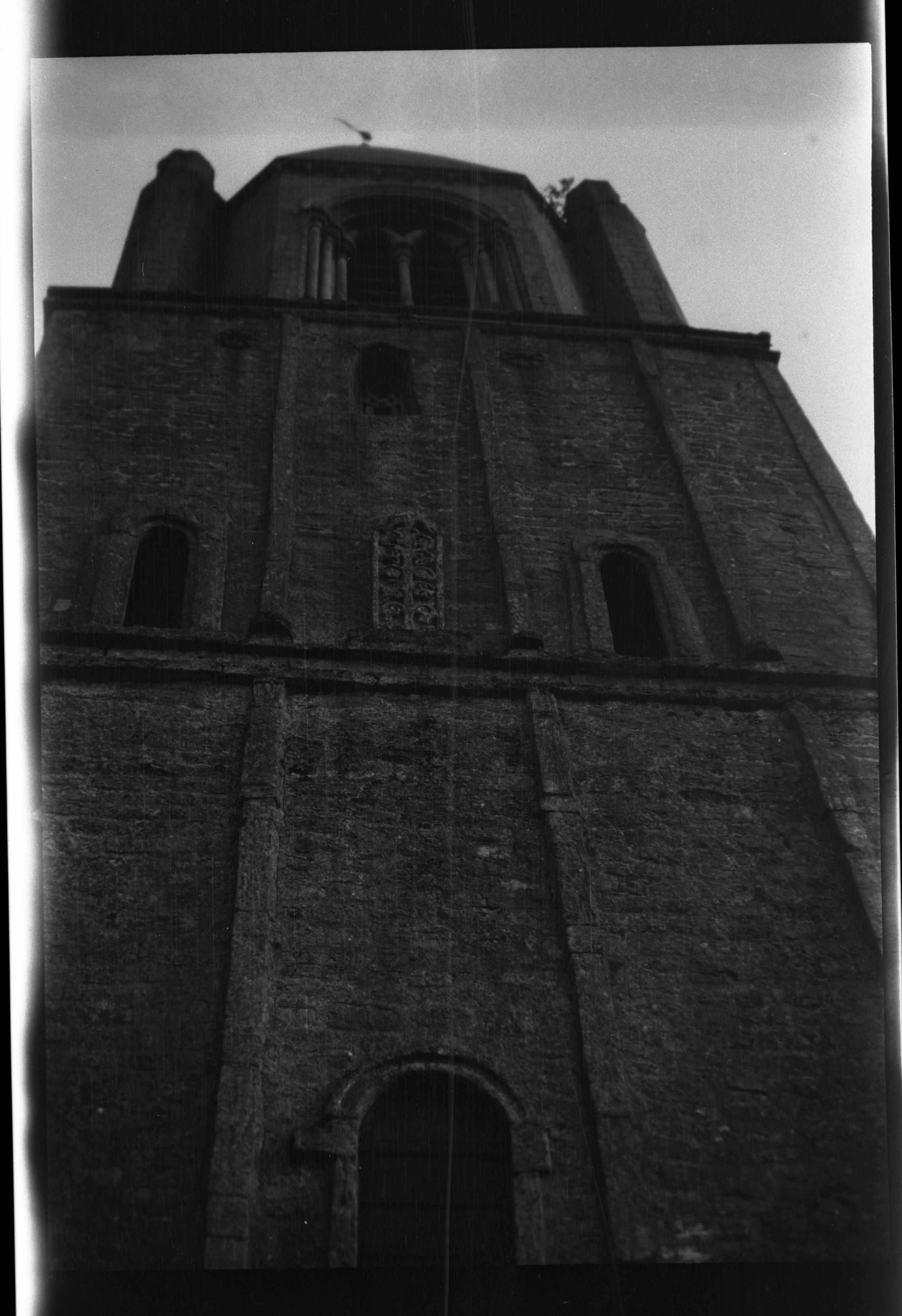 Beskrivning: Barnack Church. Kyrktornets nordfasad.