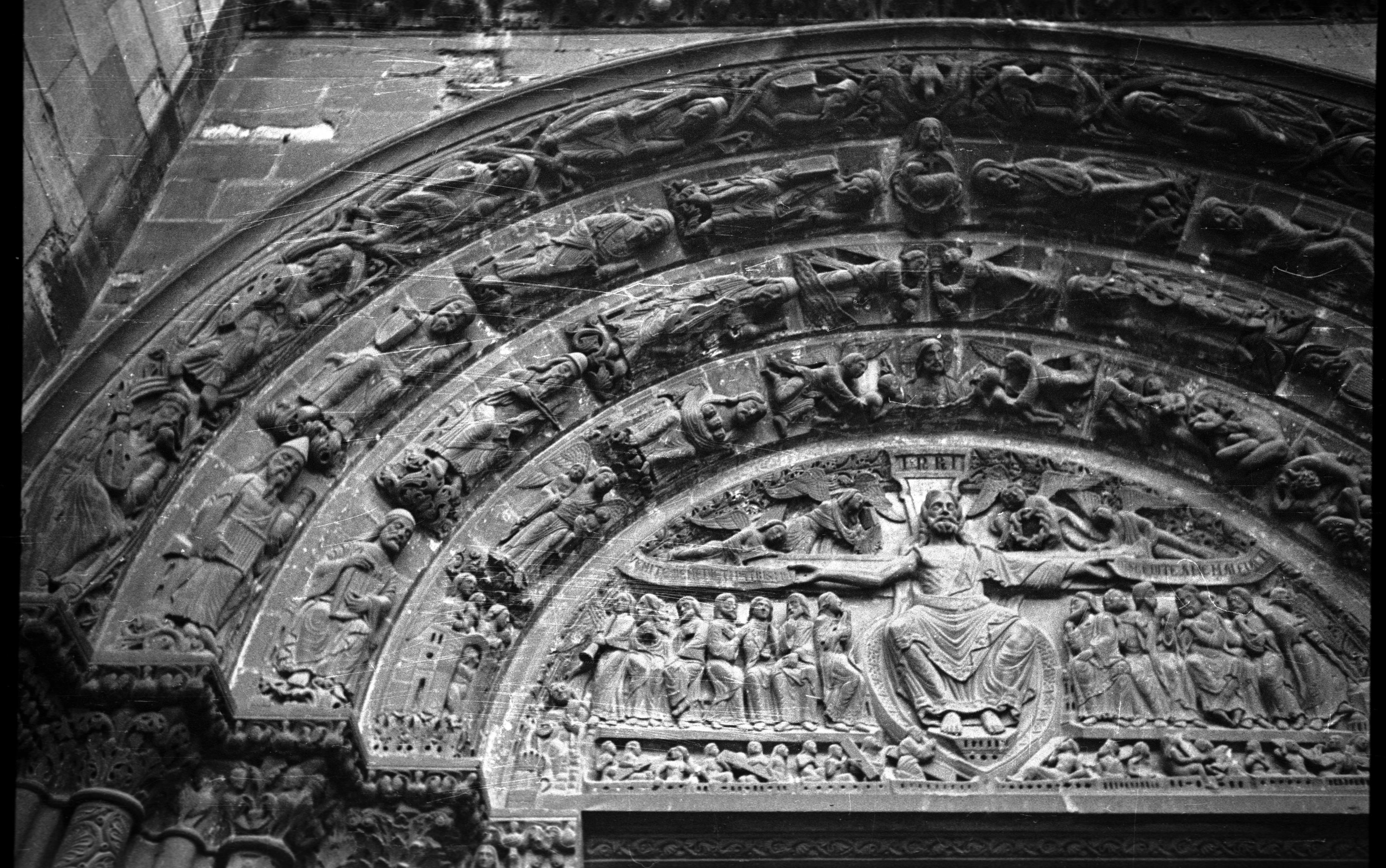 Beskrivning: Basilique de Saint-Denis. Västfasadens mittportal, tympanon.