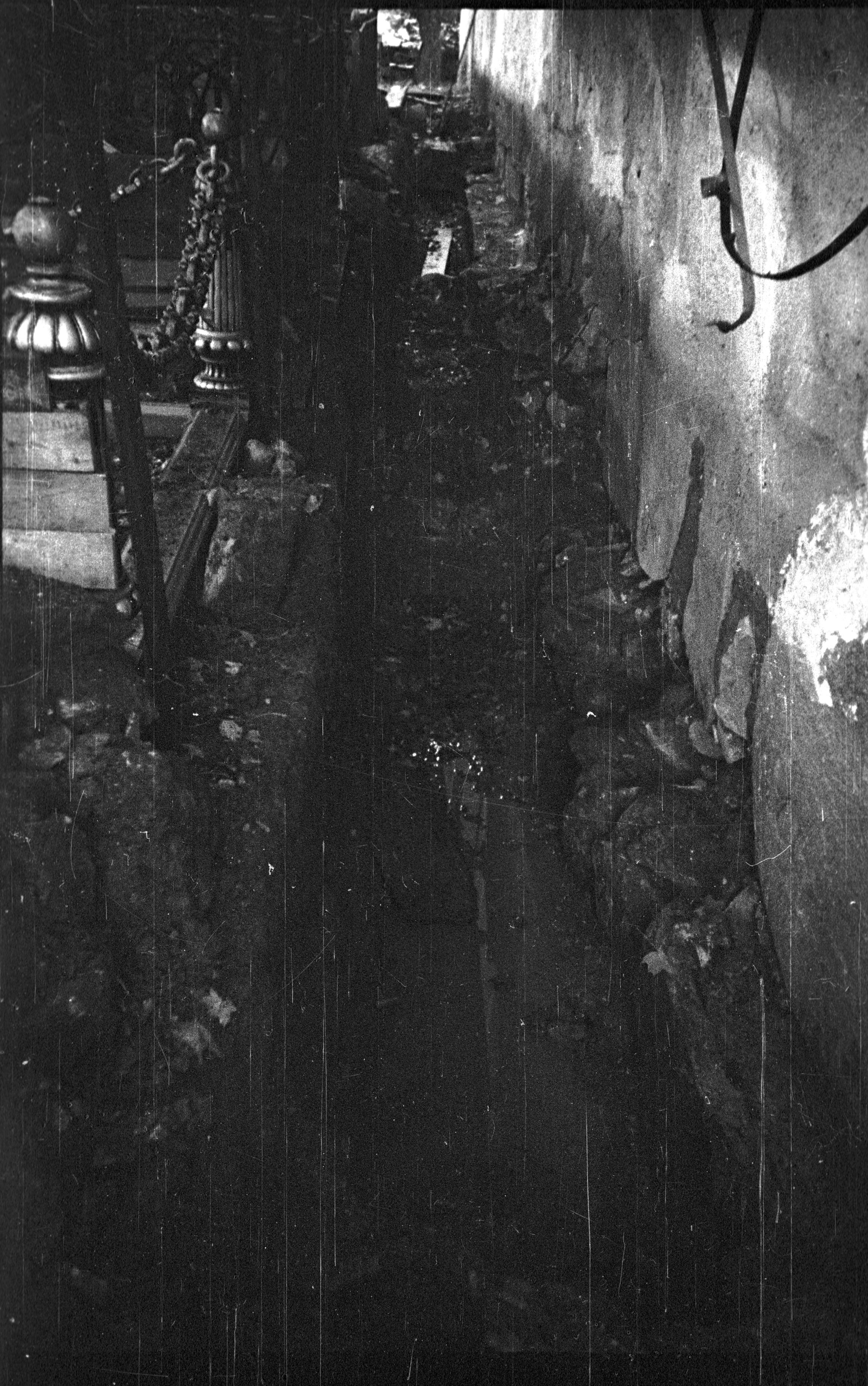 Beskrivning: "Utgrävning vid sydmuren från öster med runstenen"