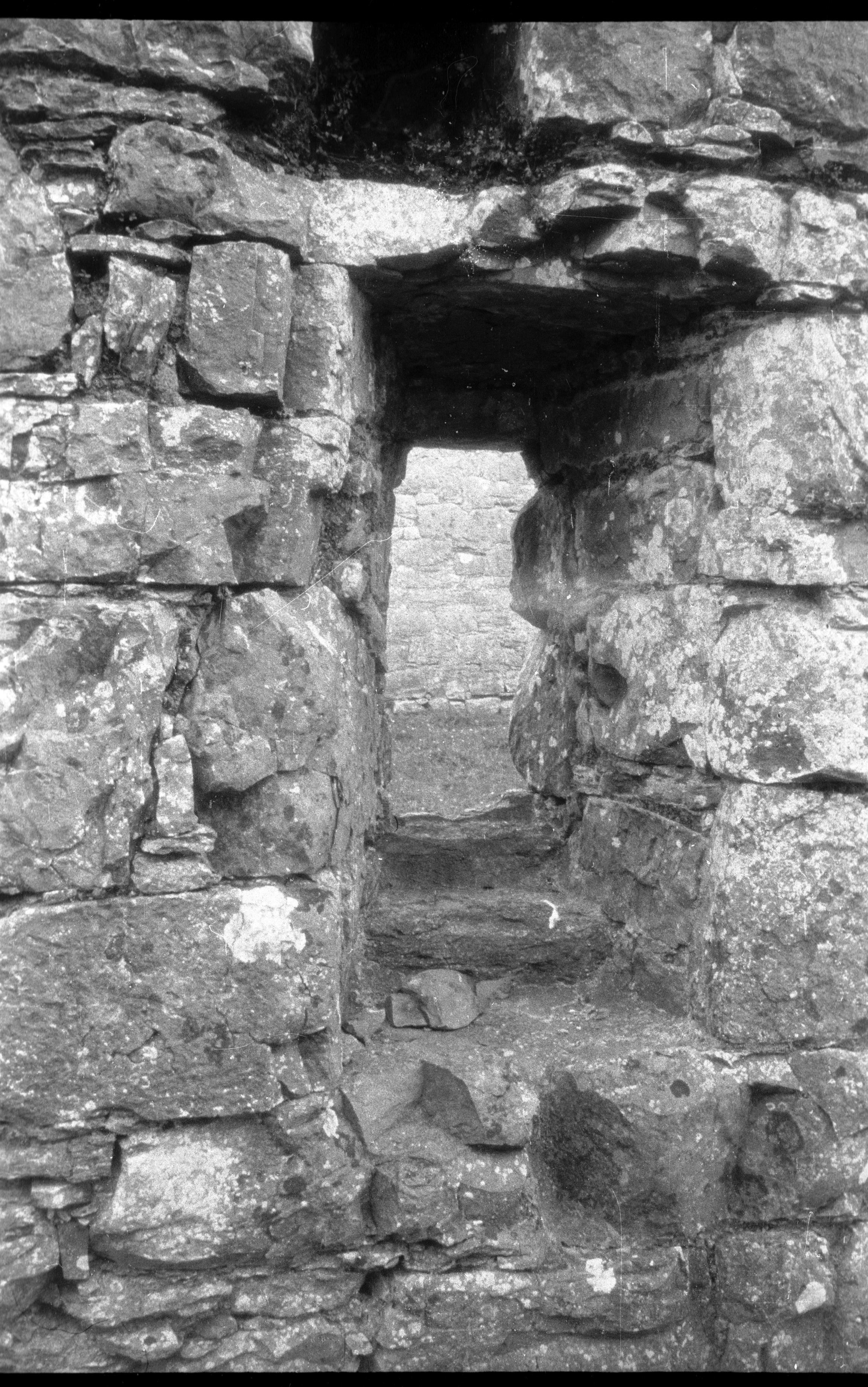 Beskrivning: Beskrivning: St. Mary's Abbey. "Klostrets rektangulära sydfönster inifrån". St. Marys kloster i klosterområdet på Devenish Island, vid sjön Lower Lough Erne, County Fermanagh, Ulster, Nordirland.