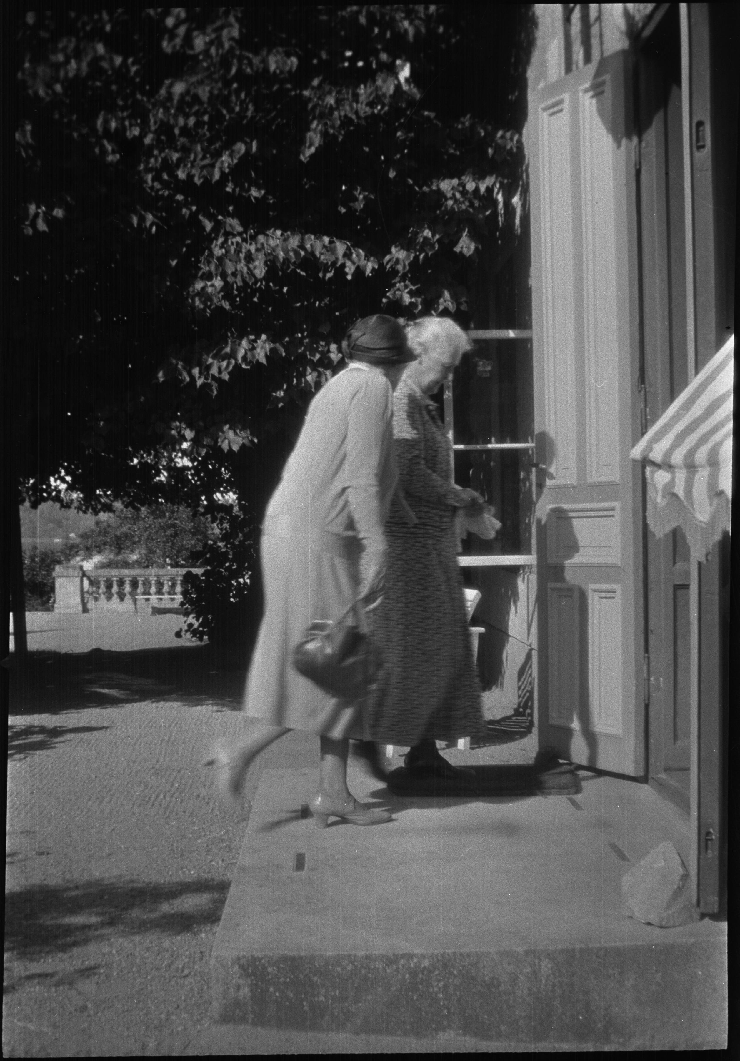 Beskrivning: Amalia Wallenberg går in i herrgården